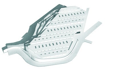 Trotz Zentrumsnähe ist der eigene Parkplatz für den gehobenen Wohnkomfort unverzichtbar. De facto liegt die gesamte Anlage auf einer Tiefgarage. Jeder Wohnung sind 2,5 Stellplätze zugeordnet. Linsberger: „Um die Terrassierung zu schaffen, mussten wir ein halbes Geschoß abgraben. Besonders stolz bin ich auf die Gestaltung der Garage: Es gibt keine Angstträume.“ Schraubenförmig windet sich die Rampe zu den Parkebenen hoch, von denen kurze Schleusen zu den einzelnen Erschließungsgängen durchstechen. Umgeben ist der Garagenbaukörper von einer mächtigen Betonwand, die mittels Streifenrelief und horizontaler Sichtfenster etwas aufgelockert ist. Sie erweist dem örtlichen Bruchsteinmauerwerk Reverenz.
