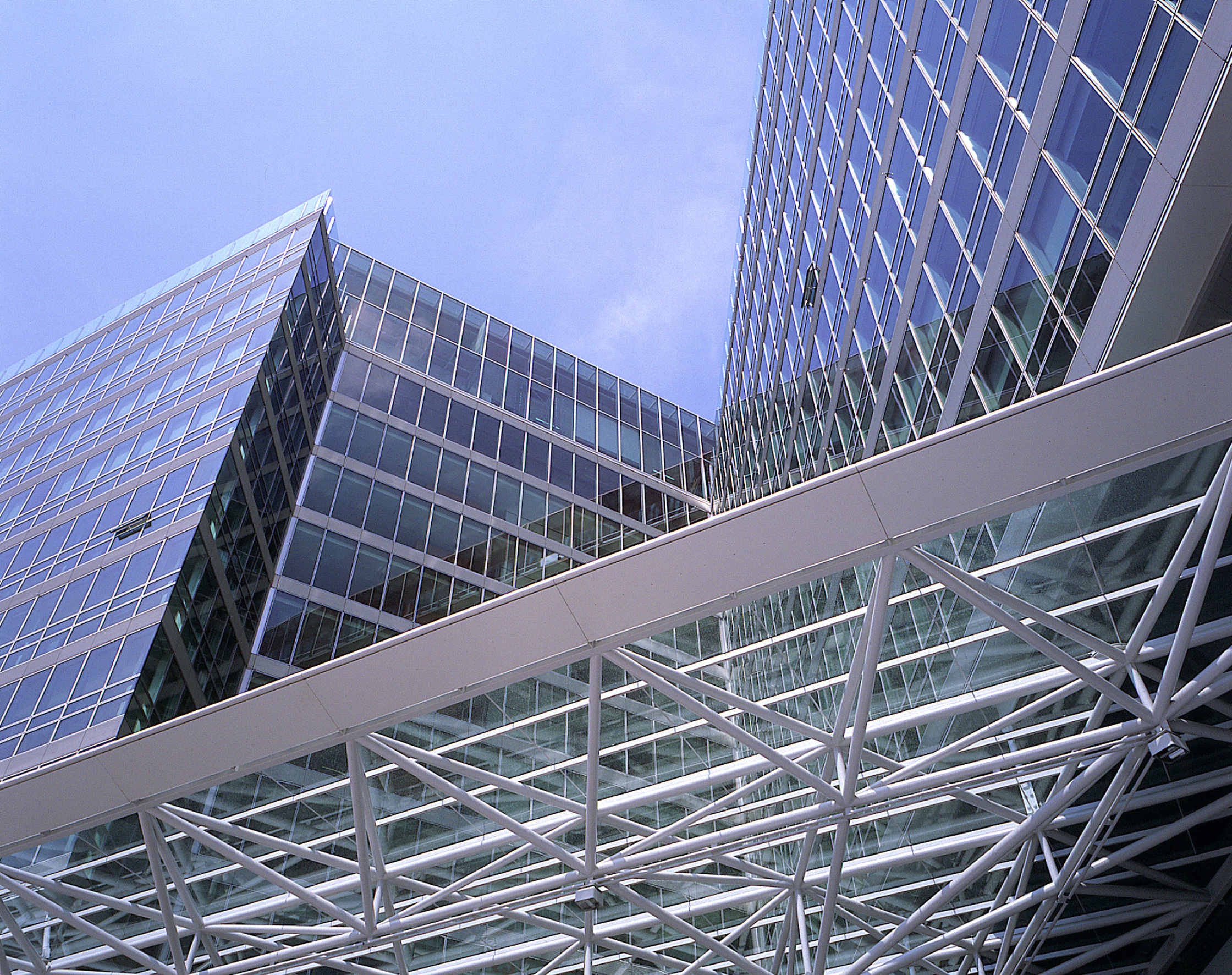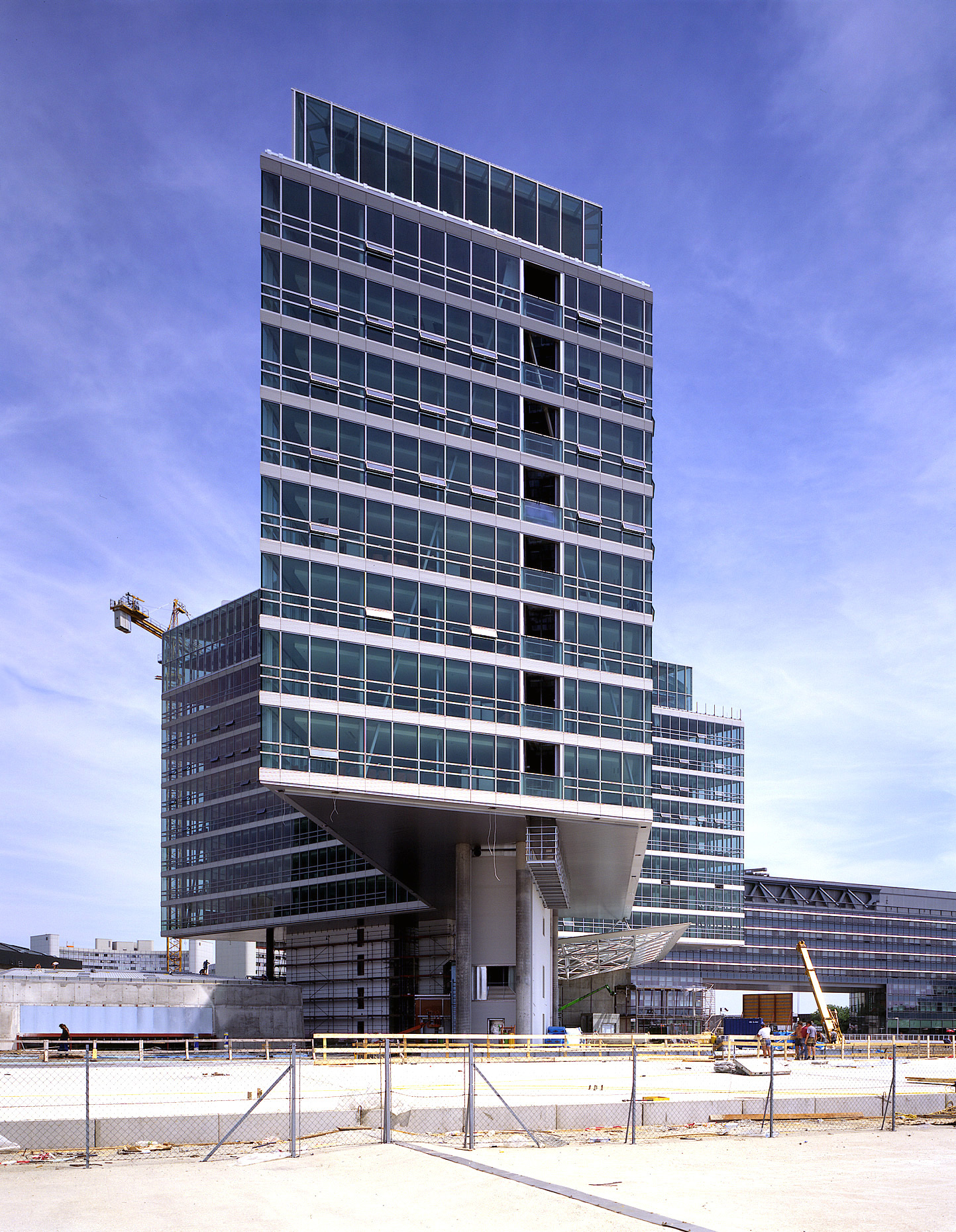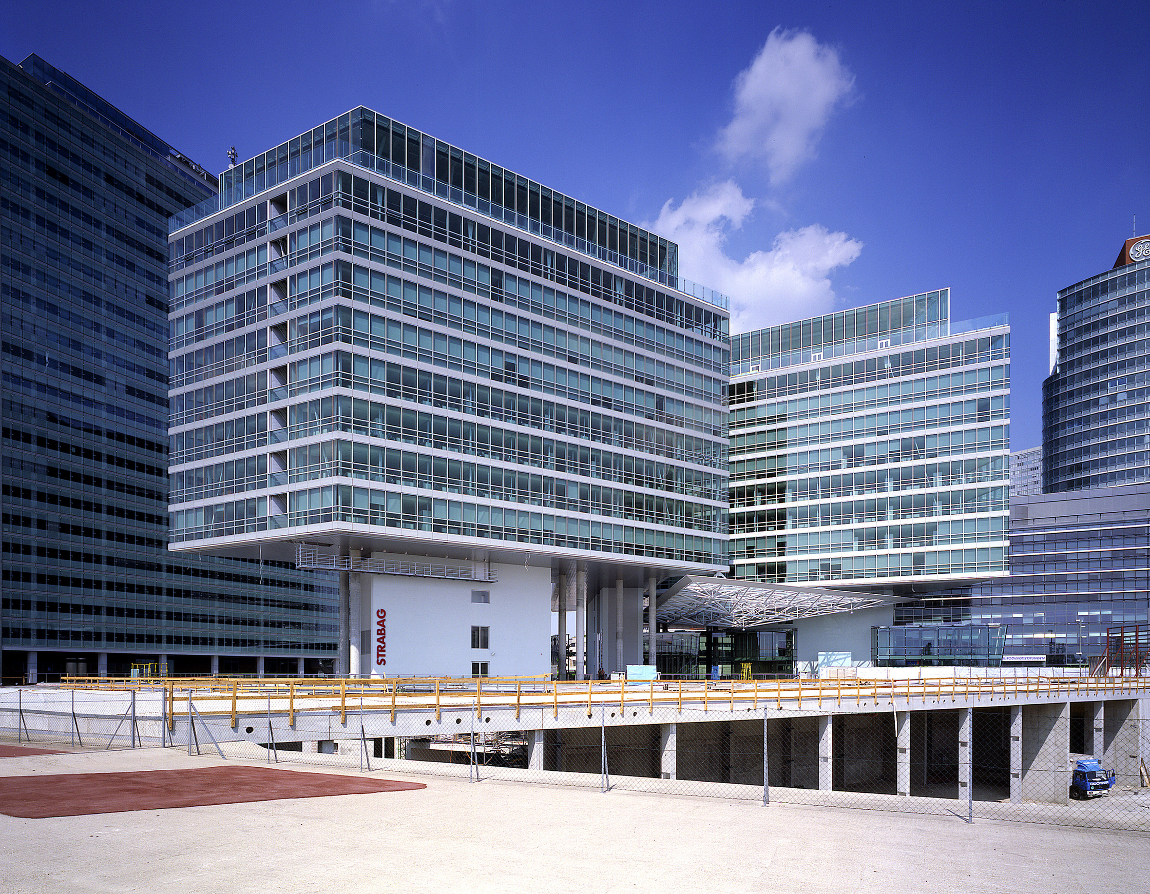 Doch bis es so weit ist, hat es keinen Zweck zu jammern. Und so befindet sich ein weiteres Projekt im Endspurt, Bezug im Sommer, Eröffnung im Herbst. Angesiedelt zwischen Ares-Tower und Tech-Gate, mit dem sich Holzbauer die eigene Sicht vom Andromeda-Veteranen hinaus auf die Donau verstellt hat, arbeitet die Strabag an ihrer neuen Konzernzentrale. Der Entwurf stammt aus der Feder der Architektenpartnerschaft Ernst Hoffmann und Franz Janz. Sinn und Zweck des Projekts: die Instanzen aus den derzeitigen drei Wiener Standorten unter einem Dach zusammenzufassen - ein Prestigeprojekt, das als solches gemeint war und als solches erkennbar sein wird.