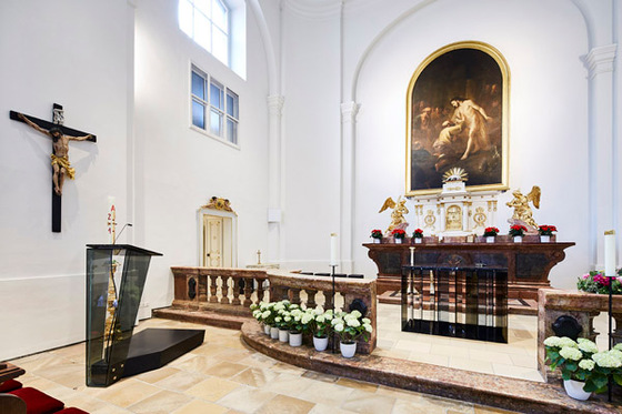 Für das konsensfähig gestaltete liturgische Inventar zeichnen die Architekten nicht verantwortlich. Altarraumgestaltung (Otto Lorenz), Kreuzweg (Tobias Kammerer) und Taufbecken (Silvia Kropfreiter-Weihsbeck), die sich durchaus dezent in die Architektur einfügen, gingen aus geladenen Künstlerwettbewerben hervor.