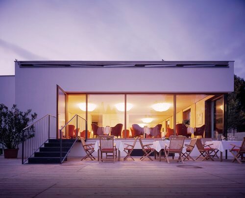 In Richtung Süden auf der Holzterrasse bestellt der Gast Spezialitäten von Kalbsleber, Kutteln über Wienerschnitzel zum Meeresfisch aus der Haubenküche