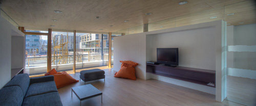 Die Bauzeit betrug genau ein Jahr, von September 2007 bis September 2008. Seit anderthalb Jahren ist der Kindergarten nun in Betrieb. „Hier werden alle Sinne gestreichelt“, sagt die Kindergartenleiterin und meint damit nicht nur die natürliche Atmosphäre, sondern auch die angenehme Raumluft. Denn Kinder und Holz haben mehr als nur eine emotional begründete Gemeinsamkeit. Beide mögen trockene Luft nicht besonders. Ein CO2-Fühler regelt den Frischluftzustrom und sorgt für ein optimales Raumklima.