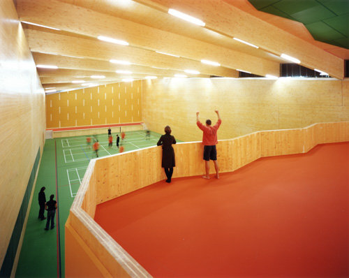 Für das Kingsdale School-Projekt wurde Brettsperrholz in großem Maßstab eingesetzt und »bis an seine Grenzen getrieben«. Das Music Department ist eine einfache Schachtel mit perforierter Oberfläche. Das Sportgebäude hingegen zeichnet sich durch sein Dach in Form eines hyperbolischen Paraboloids aus, dessen Erzeugende mittels Leimbindern hergestellt wurden. Auf ihnen wurden Brettsperrholzplatten befestigt, die dünn genug sind, um sie in die gewünschte Krümmung zu zwingen.