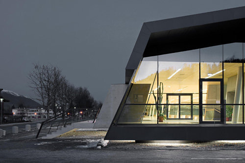 Ein Objekt, das sich selbst genügt? Keineswegs, gerade weil es so viele Reflexionen über das Umfeld einschließt, schaut es so aus, wie es ausschaut: das neue Sportzentrum von Wattens.