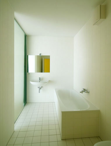 „Die Farbgestaltung ist eine sehr effiziente Möglichkeit, um so einer Wohnanlage die Eintönigkeit zu nehmen“, erklärt Georg Poduschka während eines Spaziergangs zwischen den Häusern. Der Appell an die Individualität geht weiter, als man es dem Haus auf den ersten Blick ansieht. „Der Eingriff ist groß“, sagt der Architekt, „wir haben die Fassadenfarbe bis in die Wohnungen hereingezogen.“ Das abendliche Lümmeln auf der Wohnzimmercouch ist in Zukunft eine Angelegenheit zwischen Zitronengelb, Lavendelton und Himmelblau.