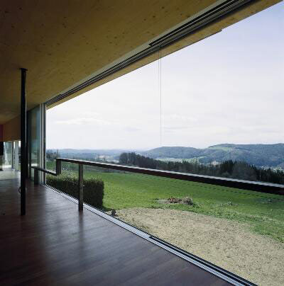 Ein starker Bezug zur Natur und der Einsatz natürlicher, heimischer Baustoffe war von Anfang an gewünscht. Über einen hangseitigen Carport, der gleichzeitig als erweiterter Lebensraum dient, betritt man das aus Massivholz errichtete Wohngeschoß. „Wir sitzen hier in der ersten Reihe fußfrei“, sagt Architekt Mitterberger, „diese einzigartige Situation musste auf jeden Fall genutzt werden.“ Nach Südwesten gibt es eine elf Meter lange Fensterfront, sieben Meter davon sind durchgehend öffenbar. „Das Kochen wird hier zum reinsten Vergnügen“, berichtet die Baufrau. Mit Aussicht in das Murtal wähnt man sich einem Gartenpavillon.