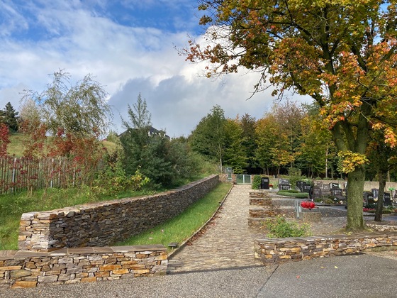 Die neue Aufbahrungshalle auf dem Steinfeldfriedhof in Graz entspricht dem Anspruch nach Übereinstimmung von Funktion, adäquater Raumerfindung und Baustruktur leider nicht. Hofrichter-Ritter Architekten setzen das „Friedhofscenter“, wie die Anlage von der Stadtpfarre Graz, der Bauherrin, genannt wird, durch seine Form spektakulär in Szene, lassen jedoch grundlegende Voraussetzungen für innere Einkehr außer Acht. Die Annäherung an den oval gekurvten Einsegnungsraum ist unschön asphaltiert und die Einfriedung der Anlage nicht mehr als die formal begründete Fortführung der ebenso schräg gestellten Wand des angebauten Nebentrakts. Der geschützte Vorbereich, der aus der weiterführenden Überdeckung der beiden raumbegrenzenden Wandscheiben des Hauptraums entsteht, ist wiederum zu knapp, um als Ort der Versammlung dienen zu können. Vieles an diesem Bau scheint nicht zu Ende gedacht: die Anlieferung des Sargs in unmittelbarer Nähe zur Urnenwand, die undifferenzierte Deckenführung der Halle über das im Fußboden hervorgehobene Oval der Grundrissfigur hinaus, fantasielose Einschnitte von Tür und Fenstern in schräg gestellte Wände. Auch die Metaphorik des Bauwerks ist vordergründig – das Ovalrund als Zeichen der Endlosigkeit, die sich an einem Ende von der Erde lösenden, „schwebenden“ Wandscheiben oder das billig gepinselte Deckenfirmament bieten kaum Interpretationsspielraum. Es erfordert große Achtsamkeit, für Metaphern, die solch bedeutungsvollen Orten unterlegt werden, den passenden Ausdruck jenseits von Geschwätzigkeit und blasser Andeutung zu finden und sie nicht Kitsch oder Klischee werden zu lassen.