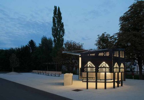 Die wiedererrichtete Gedenkstatue der Heiligen Anna als zusätzliches Element der Identifikation