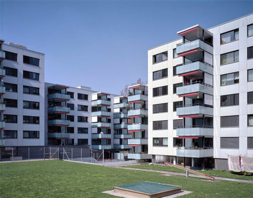 Es ist meist mehr als ein „Lifting“. Jedenfalls ist die Aufgabe so bekannt wie verbreitet: Bauten aus der Zeit des Wirtschaftsbooms sollen energetisch und schalltechnisch, aber auch ästhetisch auf den neuesten Stand gebracht werden. Ein Beispiel dafür ist die Wohnüberbauung Schmiedhof in Ebikon. Mitten in der Schweiz, zwischen der Touristikmetropole Luzern und dem Steuerparadies Zug gelegen, ist sie Teil des für Agglomerationsgemeinden typischen Siedlungsbreis. Ebikon entwickelte sich ab den 1950er Jahren vom Bauerndorf zur Industrie(vor)stadt. Mittlerweile auf fast 12.000 Einwohner angewachsen, setzt die Gemeinde ihren Bauboom fort. Anfang März sorgte allerdings ein Dämpfer für Schlagzeilen, als sich der Investor vom geplanten Erlebnis- und Einkaufszentrum „EbiSquare“, das mitten im Ort auf einer Landreserve des Liftherstellers Schindler entstehen hätte sollen, zurückzog – wohl infolge der aktuellen Finanzkrise.