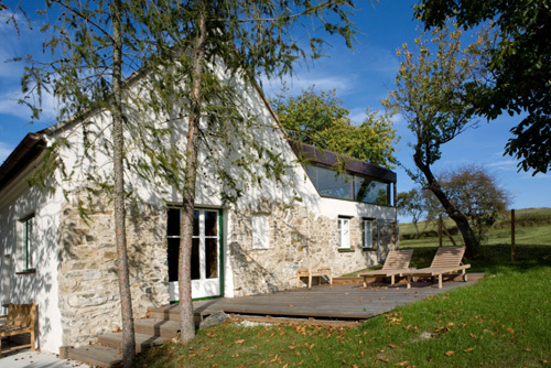 Ein zuvor landwirtschaftlich genutzter Hof im Waldviertel sollte zu einem Wochenenddomizil mit Option auf dauerhaftes Wohnen umgebaut werden. Der Bestand umfasste ein zuvor zweigeteiltes Wohnhaus mit Zubau, eine Scheune und ein Bienenhaus. Die baulichen Maßnahmen reichten von der vorsichtigen Sanierung bis zum Teilabbruch und umfassten neben der räumlichen Neustrukturierung auch die komplette Erneuerung der Infrastruktur (Wasser, Strom, Gas). Die Aufstockung am Wohngebäude besteht aus einer Leichtkonstruktion in Holz-Stahl-Kombination.