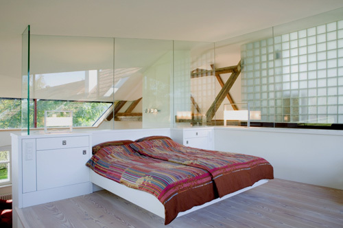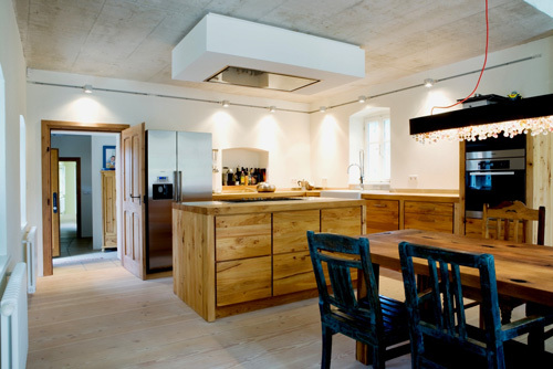 Schwerpunkt der Überlagerung der verschiedenen Zeitschichten zu einem neuen, heutigen Bedürfnissen angepassten „Ganzen“ war auch bei diesem Projekt die Kontrastierung zwischen alter Substanz und neuen Räumen, sowie die Abwicklung der inneren Raumabfolge, die sich – der Topographie folgend – spiralförmig von Niveauunterschied zu Niveauunterschied vom Gewölbekeller bis zum Bad im Dachboden nach oben dreht. Angelpunkt dieser Drehbewegung ist ein zentraler Kamin, der die in sich ruhende Mitte des Wohnraums bildet. (Gabriele Kaiser nach einem Text der Architekten)