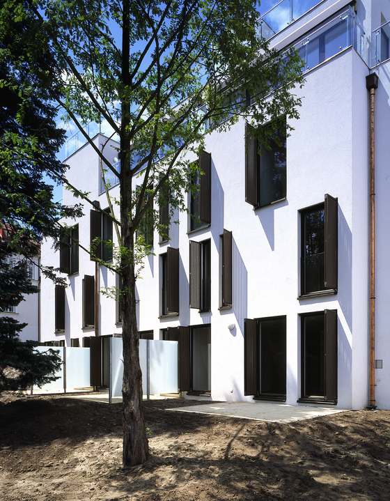 Die inneren Hallen sind auf Straßenniveau nur mit Streckmettalgittern vom öffentlichen Raum getrennt. Diese „Erdgeschoßzone“ bleibt damit offen für zukünftige Entwicklungen: Vielleicht siedelt sich hier irgendwann ein kleiner Wochenmarkt an, oder die Bewohner kommen auf die Idee, hier ihre Hausfeste zu veranstalten. Dieser Raumtypus ist ein echter Aneignungsraum, der nur darauf wartet, von neuen Inszenierungen des Alltags in Besitz genommen zu werden. Der Genossenschaft „Neues Leben“ darf man dazu gratulieren, mit diesem Projekt ihrem Namen gerecht zu werden. Swimmingpool und eine begrünte Dachterrasse, die den Bewohnern der genau 100 Wohnungen zusätzlich zur Verfügung stehen, beweisen, dass architektonische Qualität einen solchen zusätzlichen Luxus nicht ausschließt.