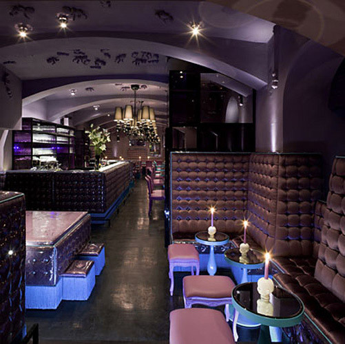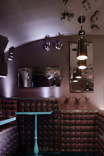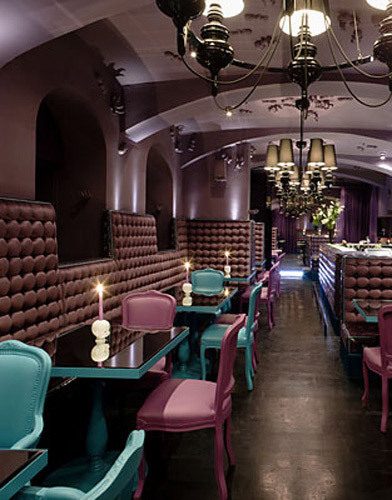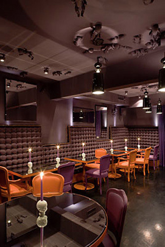 Der Wintergarten, Nichtraucherbereich im „MOTTO“. An der Decke die tanzen die Puppen frei nach dem Motto „Schönheit und Schauder“.