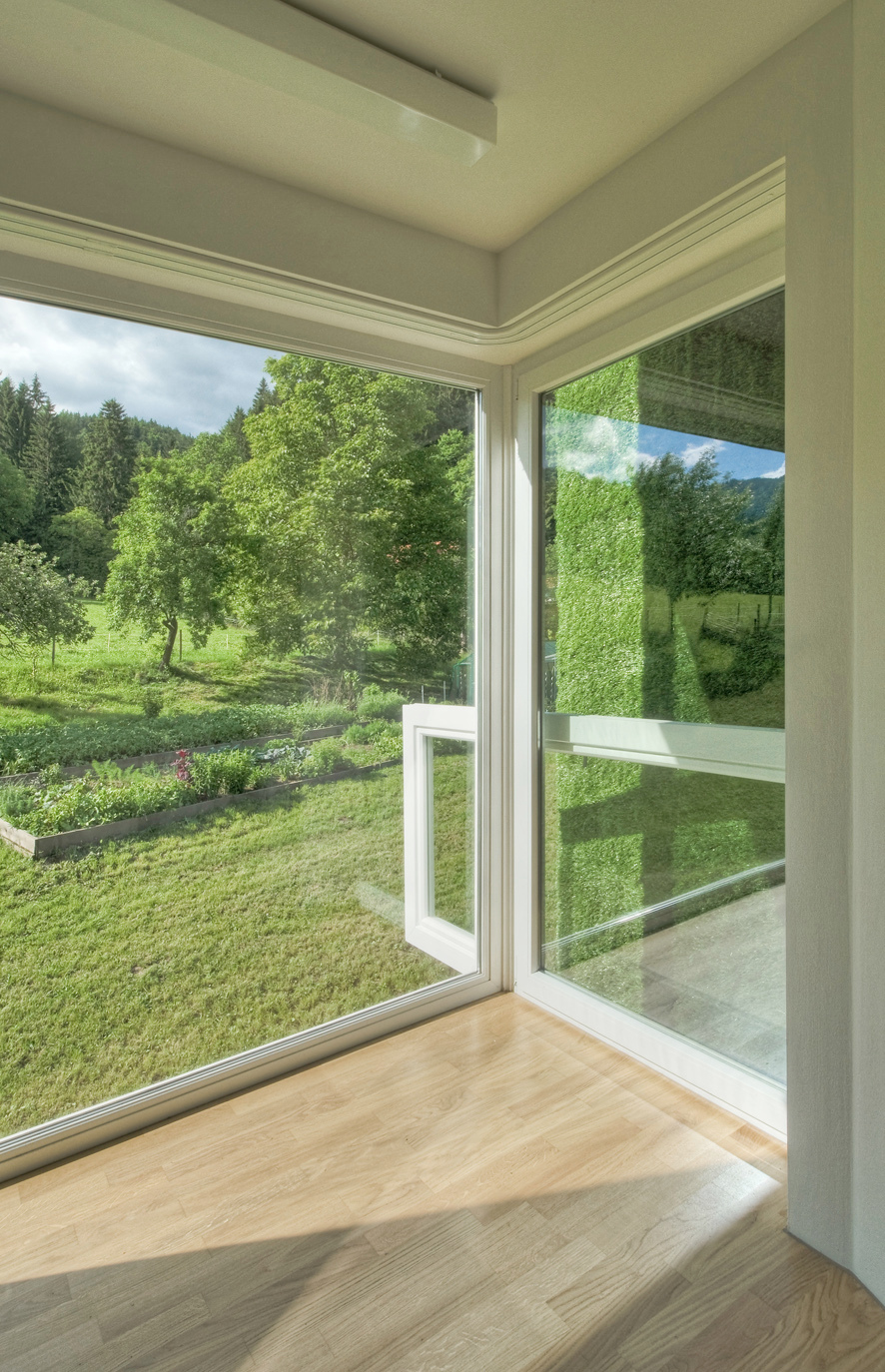 Passivhaustaugliches, umweltfreundliches Fenster-Komplettsystem in strahlendem Weiß.