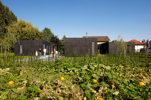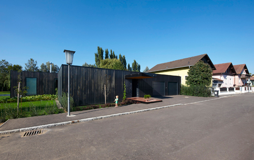 Das schwarze Haus in Zellerndorf ist gedrittelt und gestaffelt. Jede der drei Kisten hat ihre eigene Funktion. Das Besondere daran: Um Baukosten zu sparen, legte die gesamte Bauherrenfamilie selbst Hand an.