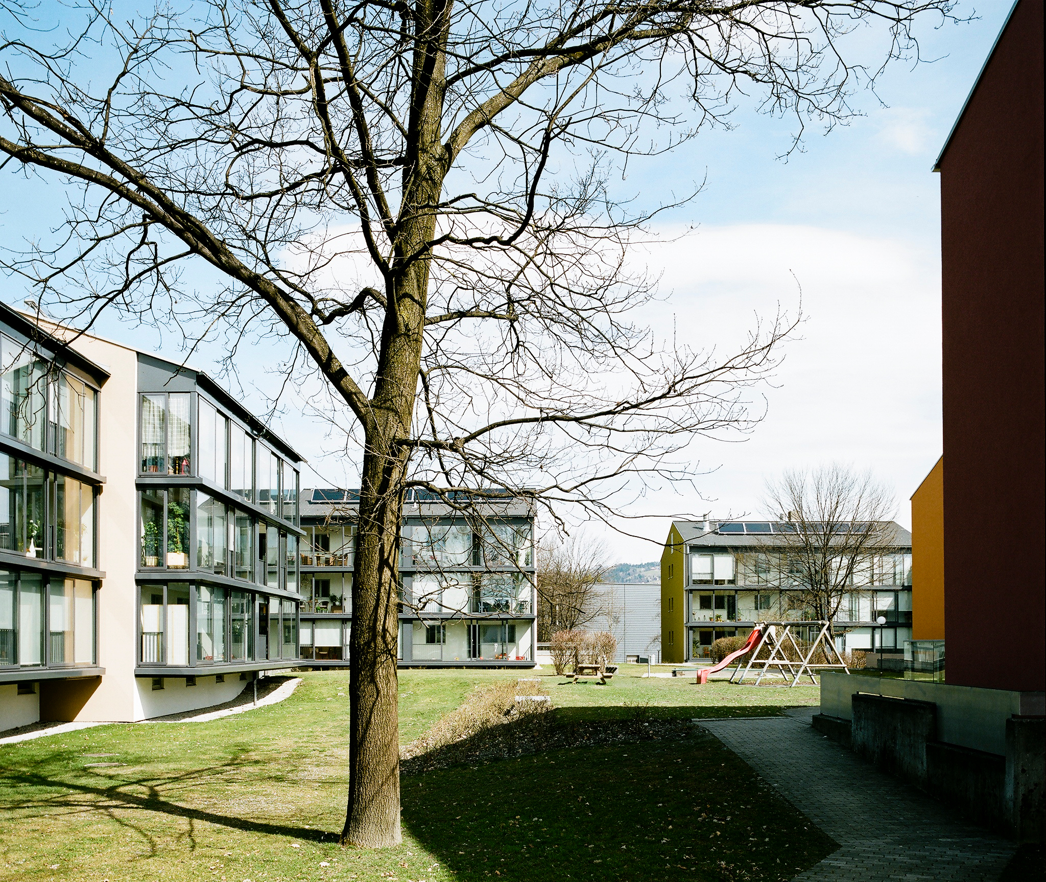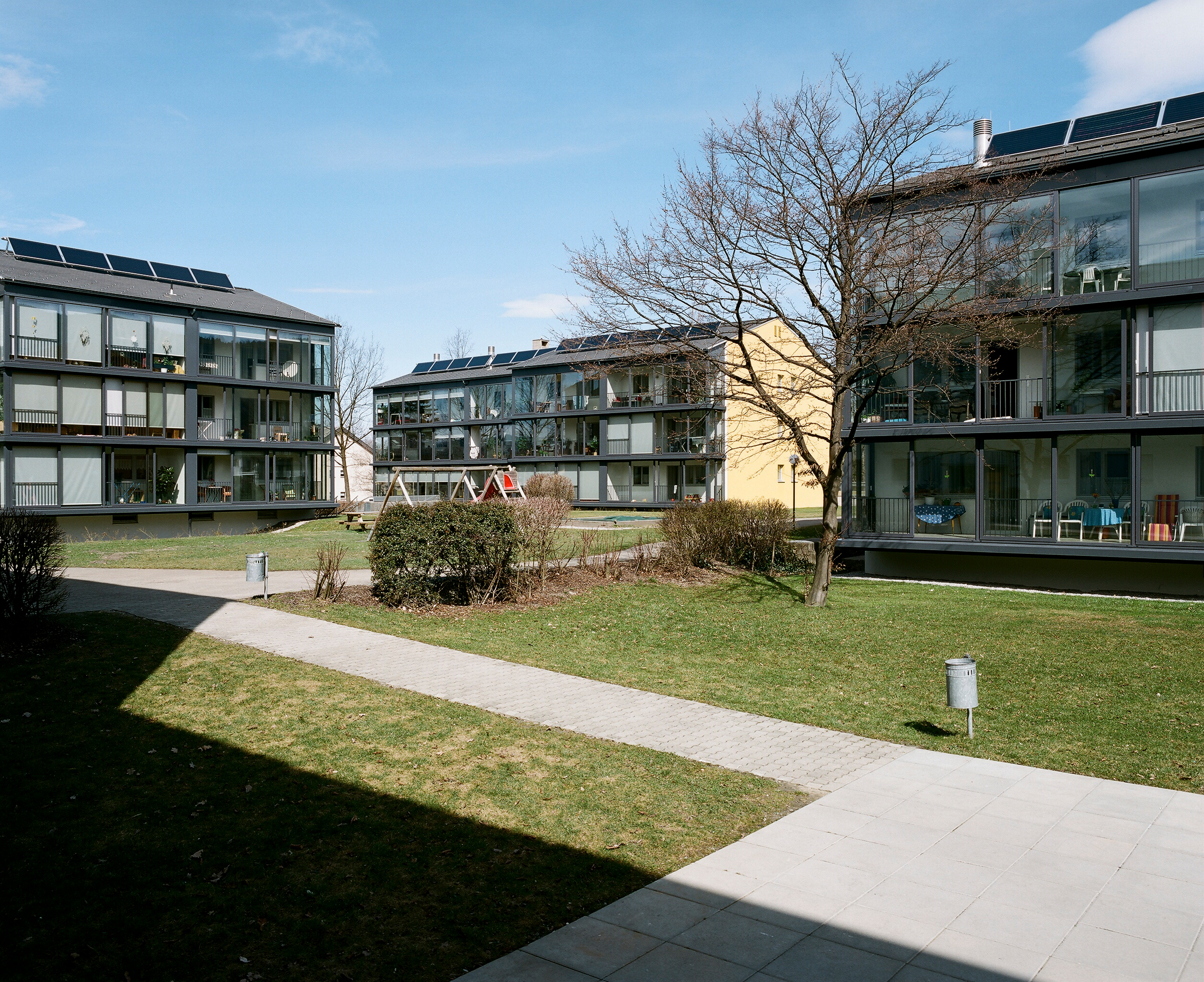 Thermische Sanierung, Balkone wurden mit einer Glashülle eingehaust, weil Balkonplatten Kältebrücken waren. Heizung und Warmwasser werden durch Gasthermen und eine Warmwasser-Solaranlage (53 % des Warmwassers und 18 % der Heizenergie) bereitgestellt. Zentrale Lüftungsanlagen mit Wärmerückgewinnung für alle Wohnungen sind in den Dachgeschossen der Gebäude untergebracht. Komfortlüftung mit WRG, 80 %