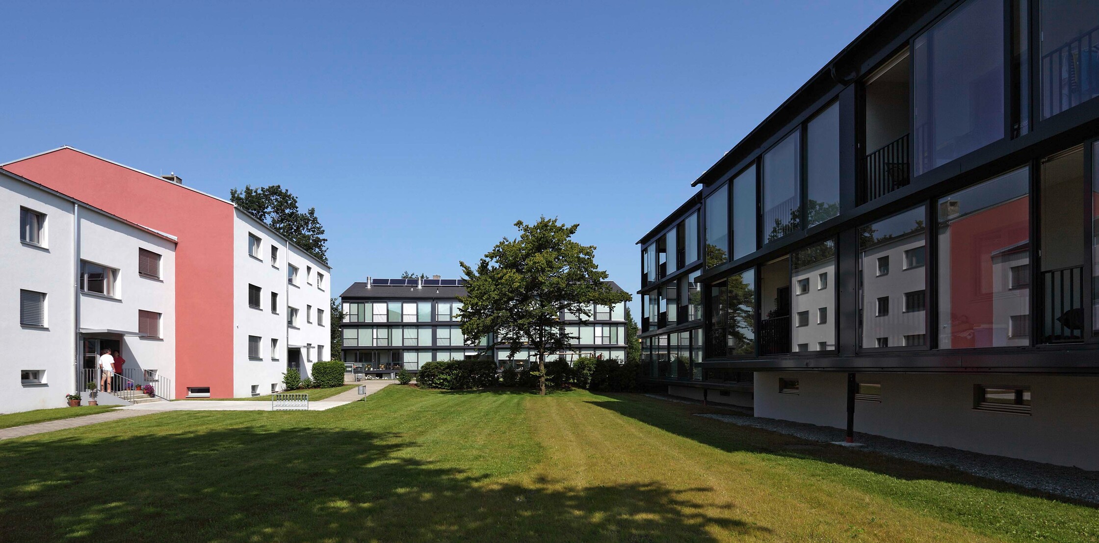 Thermische Sanierung, Balkone wurden mit einer Glashülle eingehaust, weil Balkonplatten Kältebrücken waren. Heizung und Warmwasser werden durch Gasthermen und eine Warmwasser-Solaranlage (53 % des Warmwassers und 18 % der Heizenergie) bereitgestellt. Zentrale Lüftungsanlagen mit Wärmerückgewinnung für alle Wohnungen sind in den Dachgeschossen der Gebäude untergebracht. Komfortlüftung mit WRG, 80 %