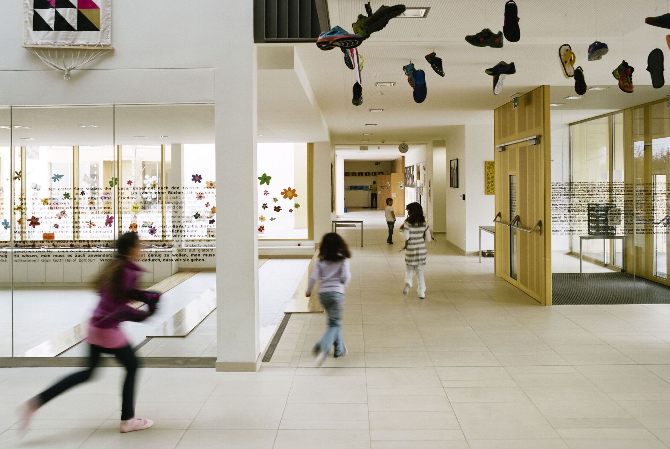 Emissionsarme Materialien, hoher Schallschutz, begrüntes Dach, Naturschulgarten, Terrassen, Spielmöglichkeiten im Freien und nicht zuletzt die lichtdurchfluteten Klassenräume und Gänge bestimmen den herausragenden Komfort dieser Schule. Die bewegliche Einrichtung der Klassenzimmer ist Teil des pädagogischen Konzepts.