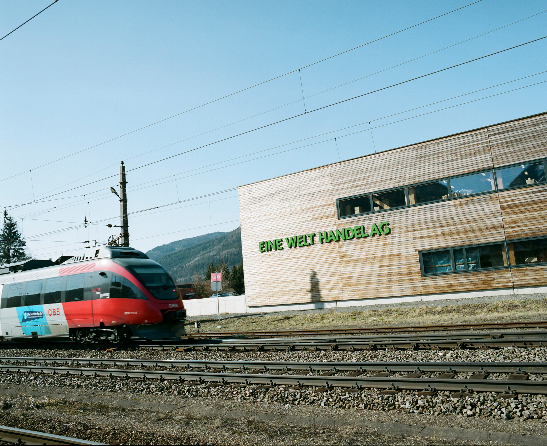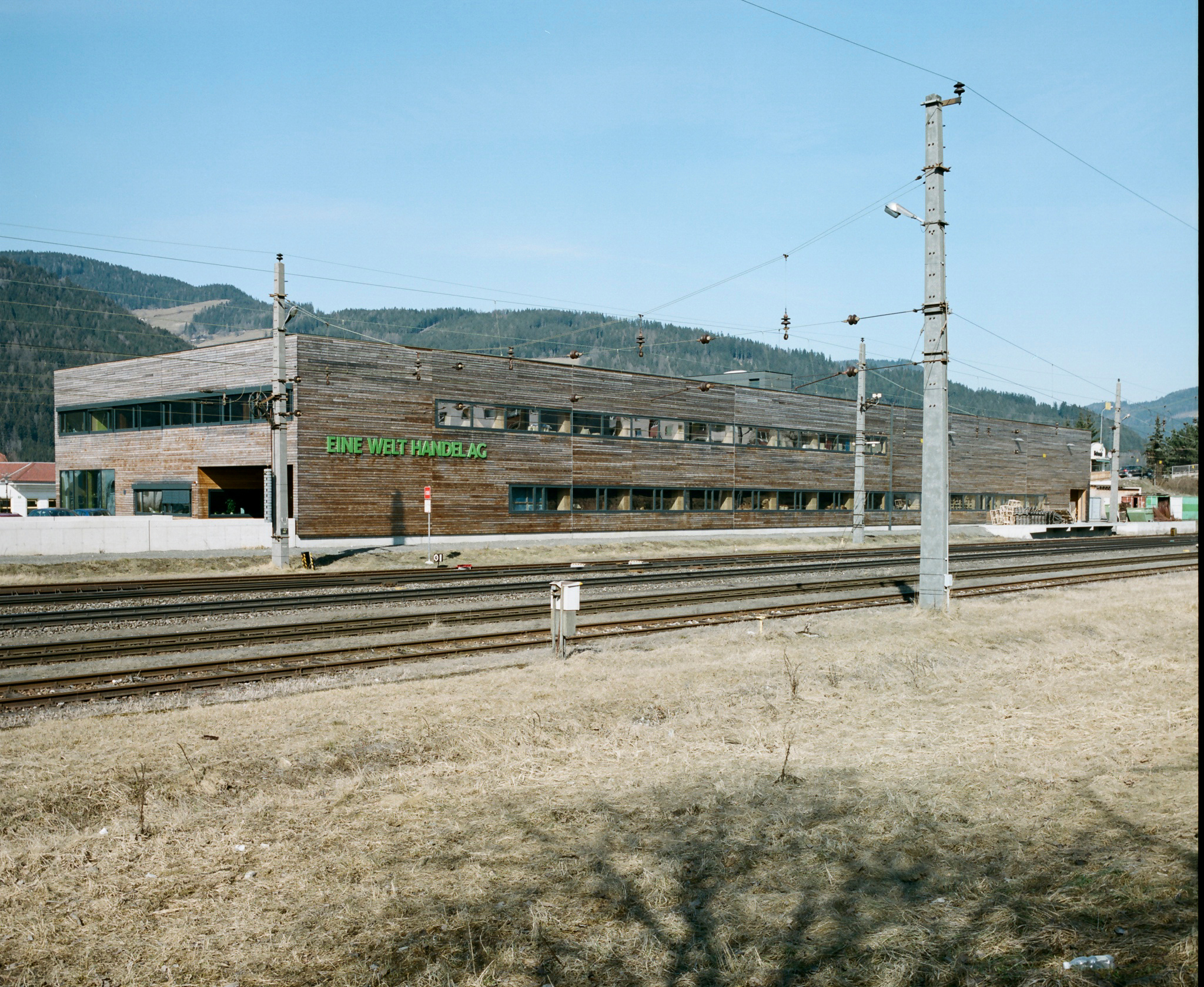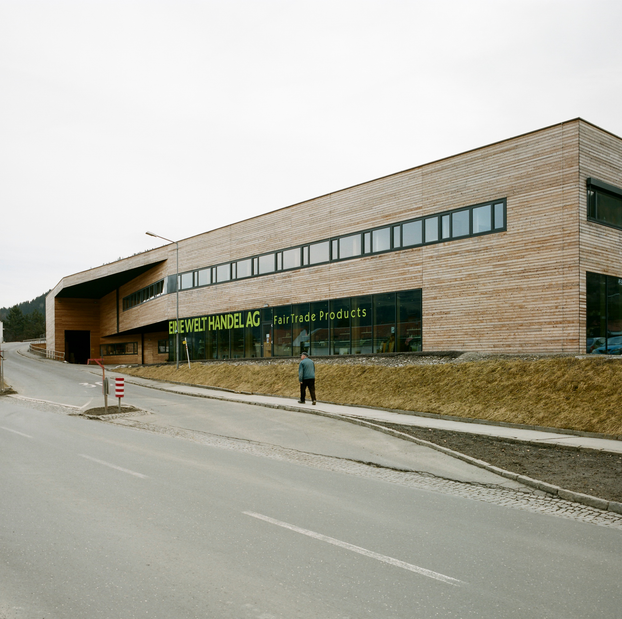 Das Firmengebäude für die Eine Welt Handel AG ist das Demonstrationsgebäude des ersten Passivhaus-Holzmodulbausystems eco²building für Gewerbeund Industriebauten, das im Rahmen des internationalen EU-Forschungsprojektes HOLIWOOD entwickelt wurde. Das Projekt HOLIWOOD untersuchte Einsatzmöglichkeiten von Thermoholz. PVC-Vermeidung, Einsatz von zertifizierten Baustoffen, allgemein ressourcenschonende und ökologische Bauweise. Die Lage des Gebäudes direkt an der Bahnlinie ermöglicht eine CO2-sparende Güter-Logistik.