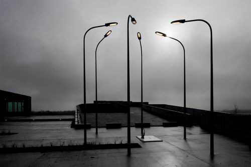 Eines der drei Projekte, die der Künstler Wilhelm Scherübl für den am Sportpark Lissfeld entwickelte. „Für das dritte Projekt verwendete der Künstler unterschiedlich lange Peitschenlampen. Mit diesen erzeugte er einerseits einen Spannungsbogen zwischen der Tiefgarage und dem Eingangbereich der Anlage und andererseits – indem er die Beleuchtungselemente kreisförmig um einen am Boden montierten Basketballkorb arrangierte – eine irritierende Akkumulation von Elementen, die Scherübl von ihrer eigentlichen Funktion entkoppelte.“ (Dr. Martin Hochleitner)