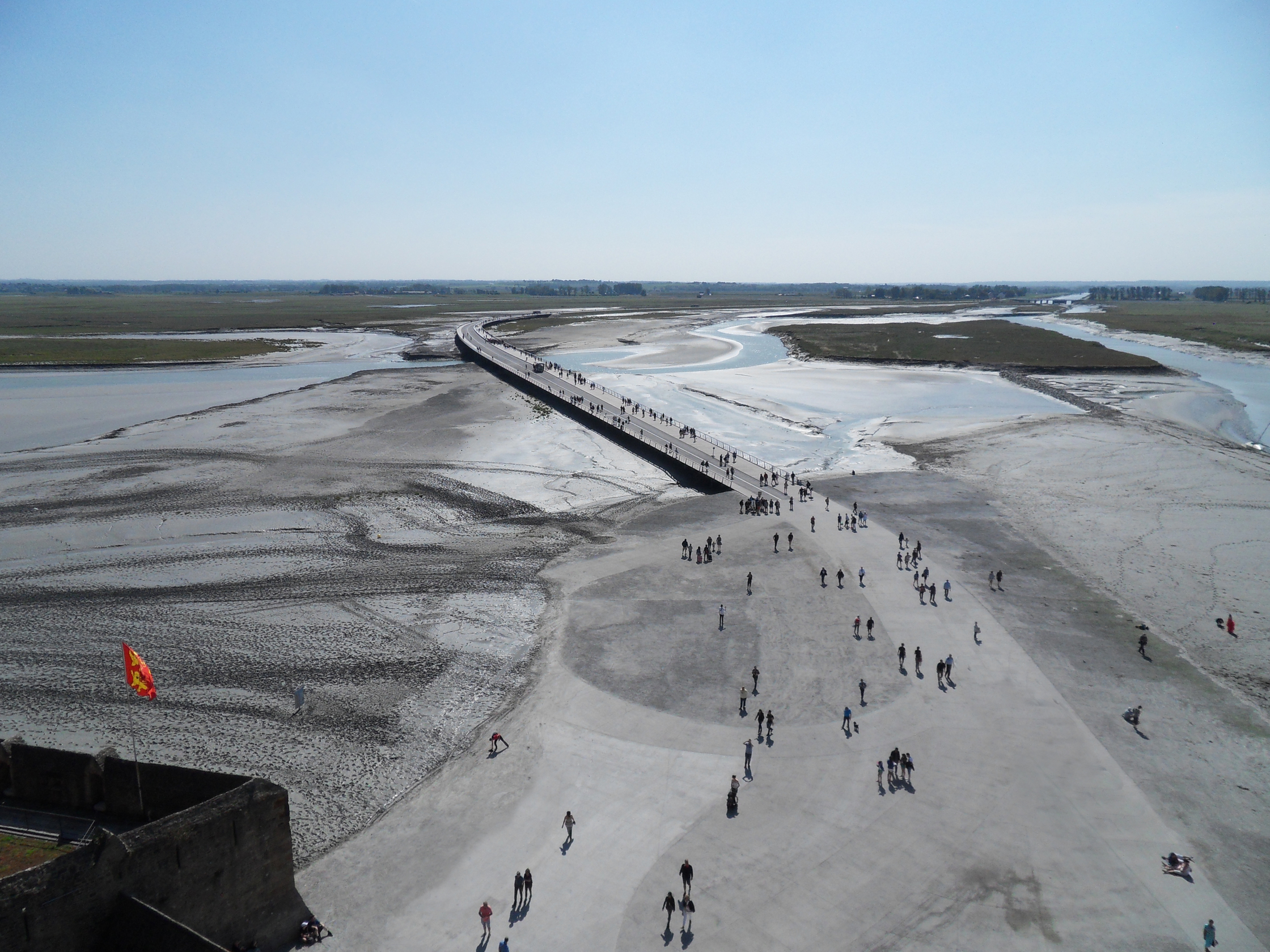 War der heilige Michael einst noch vier Kilometer vom Festland entfernt, sind es nun gerademal ein paar hundert Meter, die das Eiland von der Küste trennen. Durch den Damm konnte das Wasser des zäh fließenden Couesnon, der sich hier in einem breiten Delta ins Meer ergießt, nicht mehr ungehindert den Klosterberg umspülen. Die angeschwemmten Sedimente wurden immer und mehr, die Ebbezeiten immer trockener.