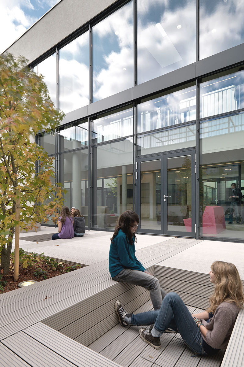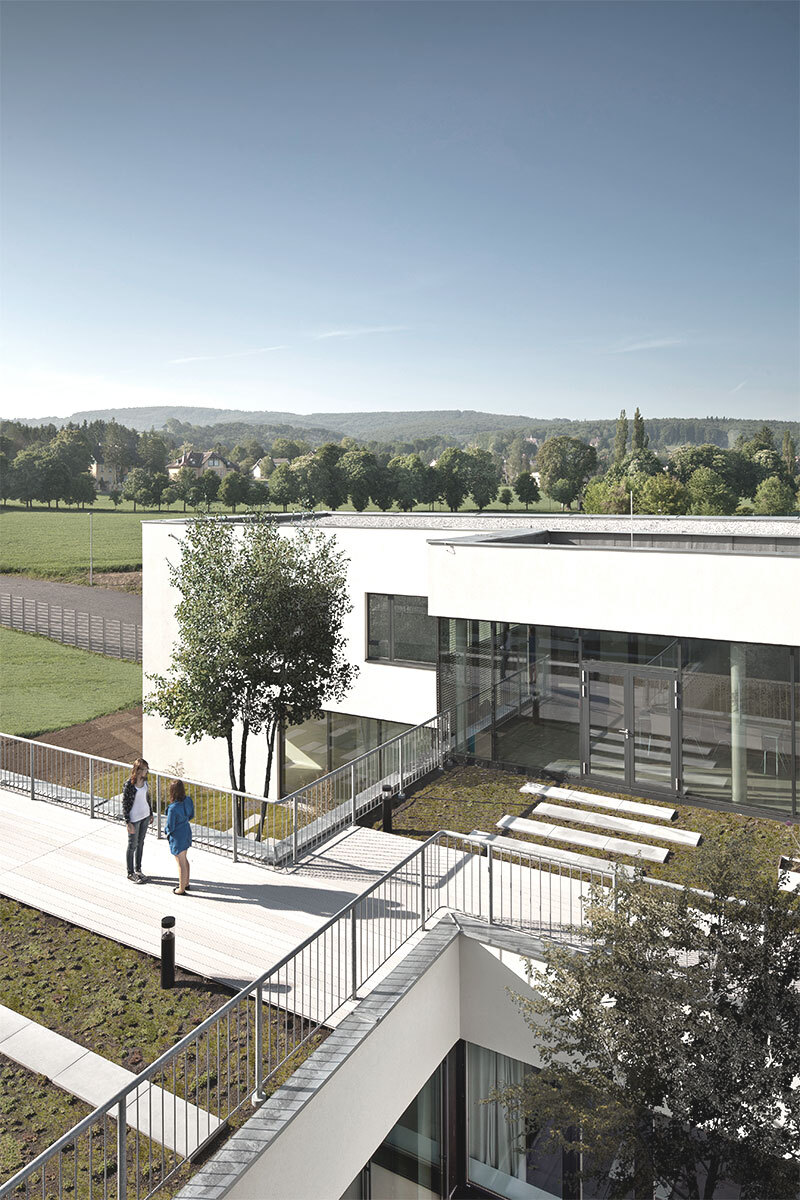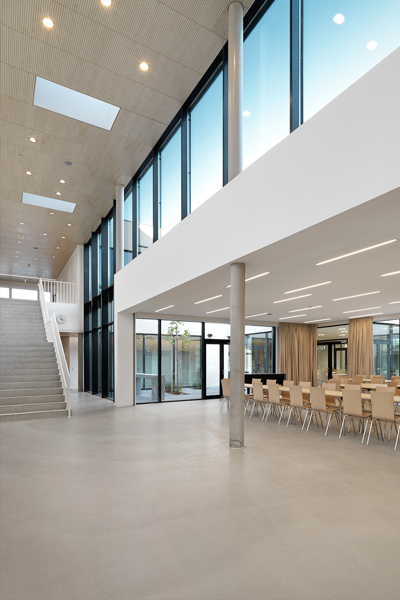 Zum ProduktEine kontrollierte Raumlüftung mit Wärmerückgewinnung sowie die Beheitzung mittels Erdwärme lässt die Schule in Kombination mit entsprechend dimensionierten Dämmstärken und aussenliegenden Sonnenschutz den Niedrigenergiestandard mit 13kW/Jahr m2 erreichen.