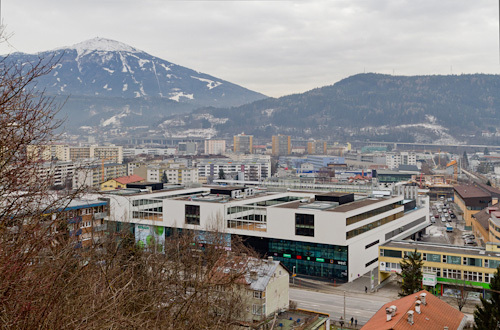 Bildung und Nahversorgung – passt das zusammen? Im Innsbrucker „Q-West“ durchaus. Unten gibt's Shopping, darüber eine Schule. Und das alles auch noch übersichtlich und klar organisiert.