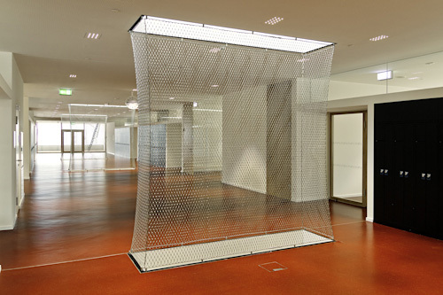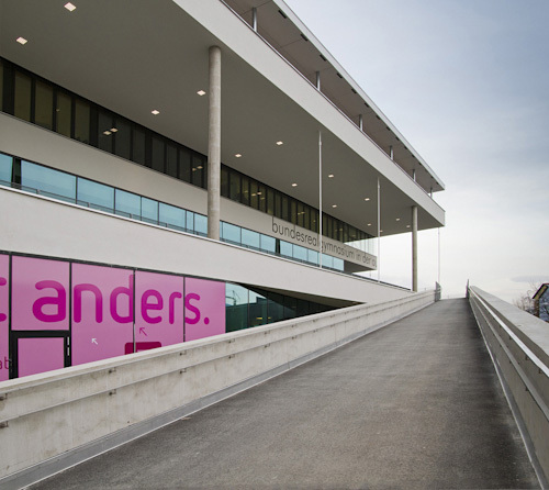 Aber die auffälligste Besonderheit liegt im Prinzip der Klassencluster, einem Schweizer Modell, das zusätzliche Unterrichtsmöglichkeiten in klassenübergreifender Form anbietet. Man könnte von überbreiten Gängen sprechen, die in der Mitte möbliert sind – links und rechts davon bleibt die vorgeschriebene Gangbreite selbstverständlich frei, und dort können Lehrer und Schüler in sehr lockerer Form zusammenkommen. Jeweils vier Klassen sind zwei solcher Cluster zugeordnet, und wenn man der Schuldirektorin glauben darf, dann tragen sie wesentlich zum Aggressionsabbau zwischen den Klassen bei.