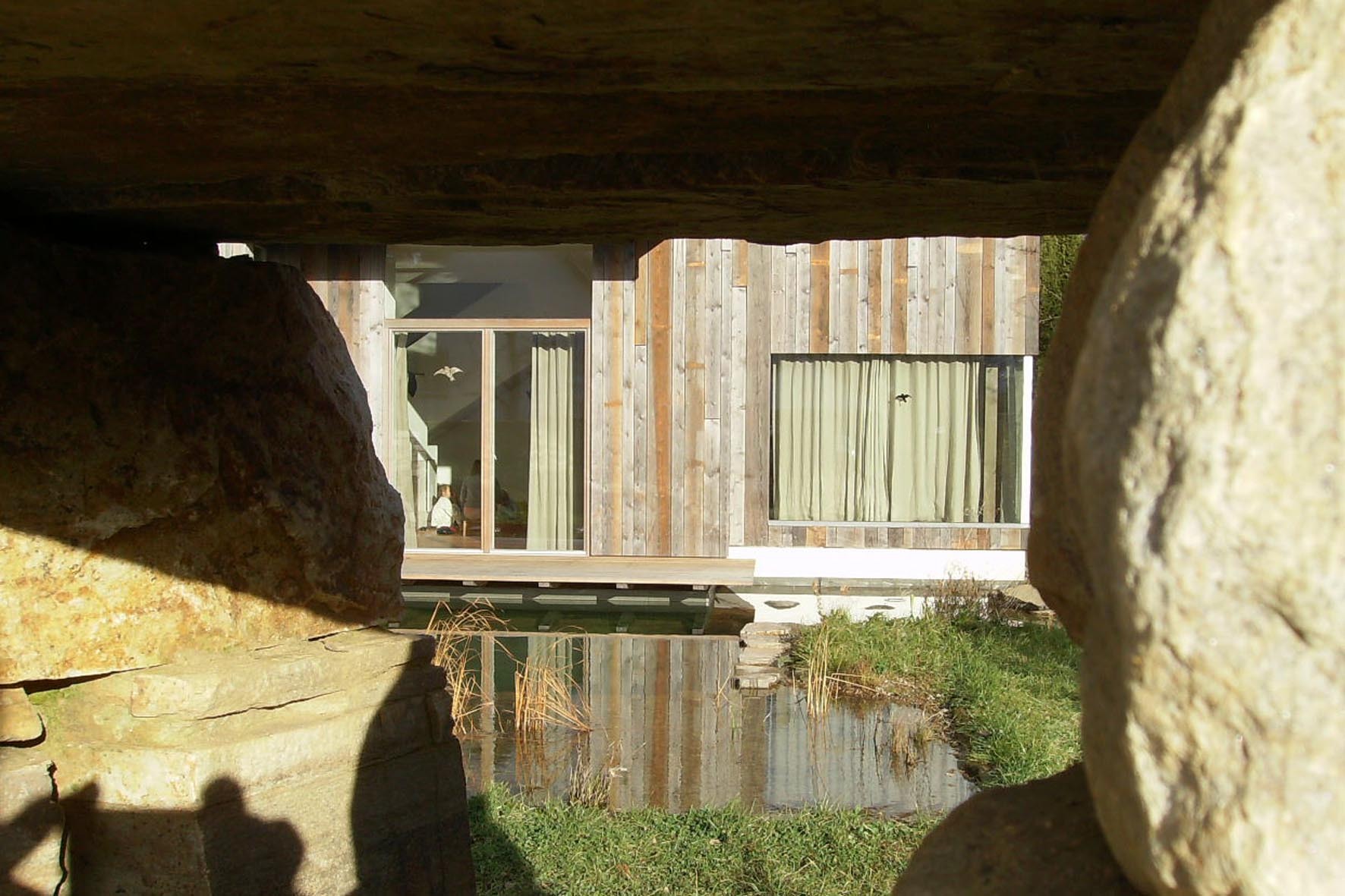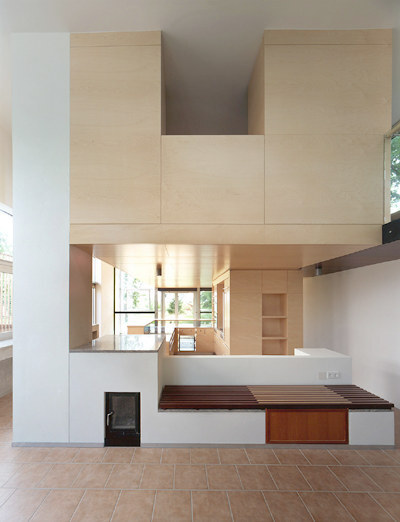 Teilsolarbeheiztes Einfamilienhaus mit Betonspeicher und zentral gelegenem Stückholzofen zur Restwärmeabdeckung und Warmwassererzeugung. EKZ vor Ort: 20kWh/m²a