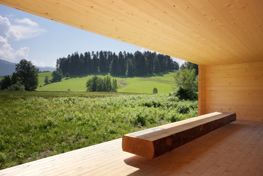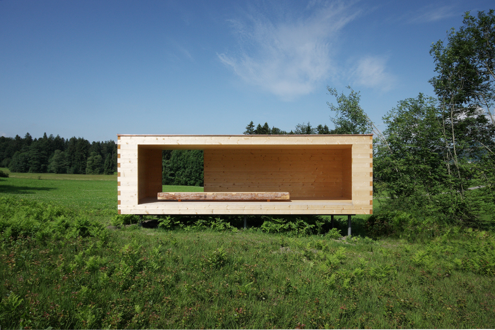 ohne Fenster und Tür, pur, empfängt der Moorroom die Wanderer entlang des Moorlehrpfades