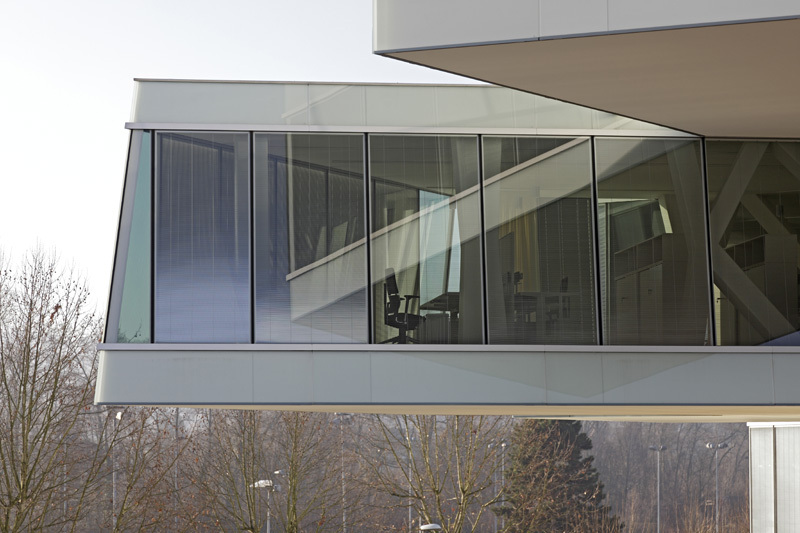 Der Aufwand für das Tragsystem übersteigt trotz einem ausgeklügelten Trägersystem mit optimierten Querschnitten den üblichen Rahmen für ein Bürogebäude. Wie bei modernen Glasbauten im Allgemeinen ist bei diesem speziellen Projekt die Tragkonstruktion jedoch nicht der hauptsächliche Kostenfaktor. Die mit der Gebäudestruktur generierte Oberfläche ist beträchtlich und schlägt sich entsprechend auch im Aufwand für die Fassade nieder – gerade weil die Gebäudeoberfläche im Hinblick auf den zukünftigen Energieverbrauch einem hohen Standard genügen musste. Die Gebäudestruktur bzw. das Tragsystem schafft aber Büroräume, die bezüglich der Beleuchtung und der Erschliessung optimale Verhältnisse bieten. Insbesondere das modulare Raster der Bürobalken und die stützenfreien Räume ermöglichen verschiedene Bürotypologien und unterschiedlich grosse Bürozellen.