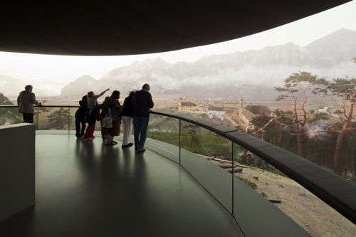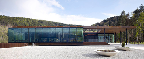 „Das Wichtigste an diesem Haus ist der Aufbau“ , erklärt Architekt Philipp Stoll vom planenden Büro stoll wagner. Es konnte sich 2006 in einem EU-weiten offenen Wettbewerb unter insgesamt 74 Teilnehmern als Sieger durchsetzen. „Wir wollten den Zylinder für das Rundgemälde nicht wie einen fetten Gasometer mitten in den Park stellen, sondern haben das Volumen in eine bestehende Geländemulde integriert.“