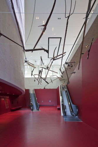 Während man sich außen an den farbenfrohen Spiegelungen des Andreas-Hofer-Denkmals, der Bergisel-Sprungschanze von Zaha Hadid und der weiß gezuckerten Nordkette erfreut, eröffnet sich innen ein riesengroßes, luftiges Nichts. Wie angenehm: Man wird nicht schon an der Schwelle mit verrosteten Bajonetten, ausgestopften Luchsen und diversen anderen Memorabilien niedergemetzelt, sondern kann erst einmal in Ruhe tief Luft holen.