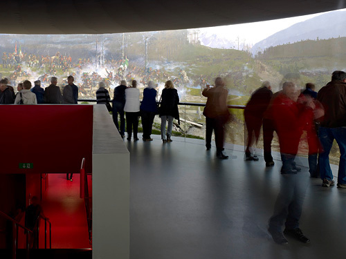 Seit heute, Samstag, hat das Innsbrucker Rundgemälde ein neues Zuhause. „Das neue Museum am Bergisel ist mit Sicherheit einer der wichtigsten Kulturbauten der letzten Jahre“ , sagt Benno Erhard, Projektleiter in der Kulturabteilung des Landes Tirol. „Es ist nicht nur ein schönes und modernes Gebäude, sondern auch die einzige Möglichkeit, das Rundgemälde, das bis vor kurzem in der alten, baufälligen Rotunde untergebracht war, nachhaltig zu sichern.“