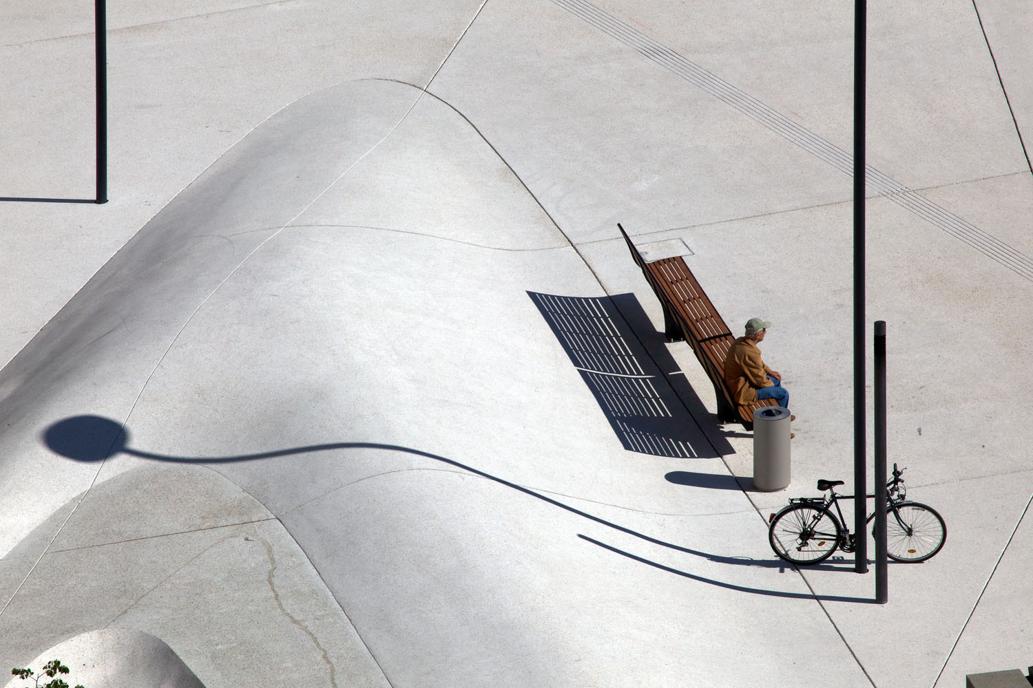 Und das Befreiungsdenkmal? Es hat nicht viel mehr gebraucht als die Gittertore zu öffnen und die Betonwellen sanft an seine Stufen gleiten zu lassen, um es vom Fremdkörper zu einem integralen Teil des öffentlichen Raums werden zu lassen. Bei Nacht bleibt es, wie die Aufmarschfläche vor dem Landhaus, nur schwach beleuchtet. Da gehört der Platz den Stadtbewohnern, vor allem den jüngeren, die hier ein Skaterparadies entdeckt haben. Konflikte unter den Nutzern gibt es kaum, weil alle spüren, dass ihnen hier etwas geschenkt wurde, das man teilen muss: einen präzise gestalteten Stadtraum außerhalb kommerzieller Interessen, ohne Zweifel den schönsten Platz der Stadt.