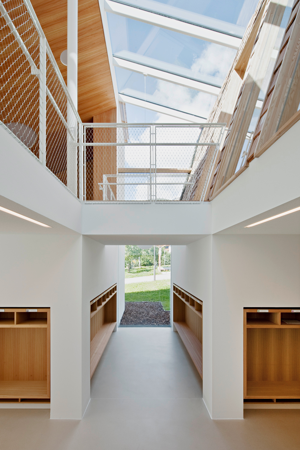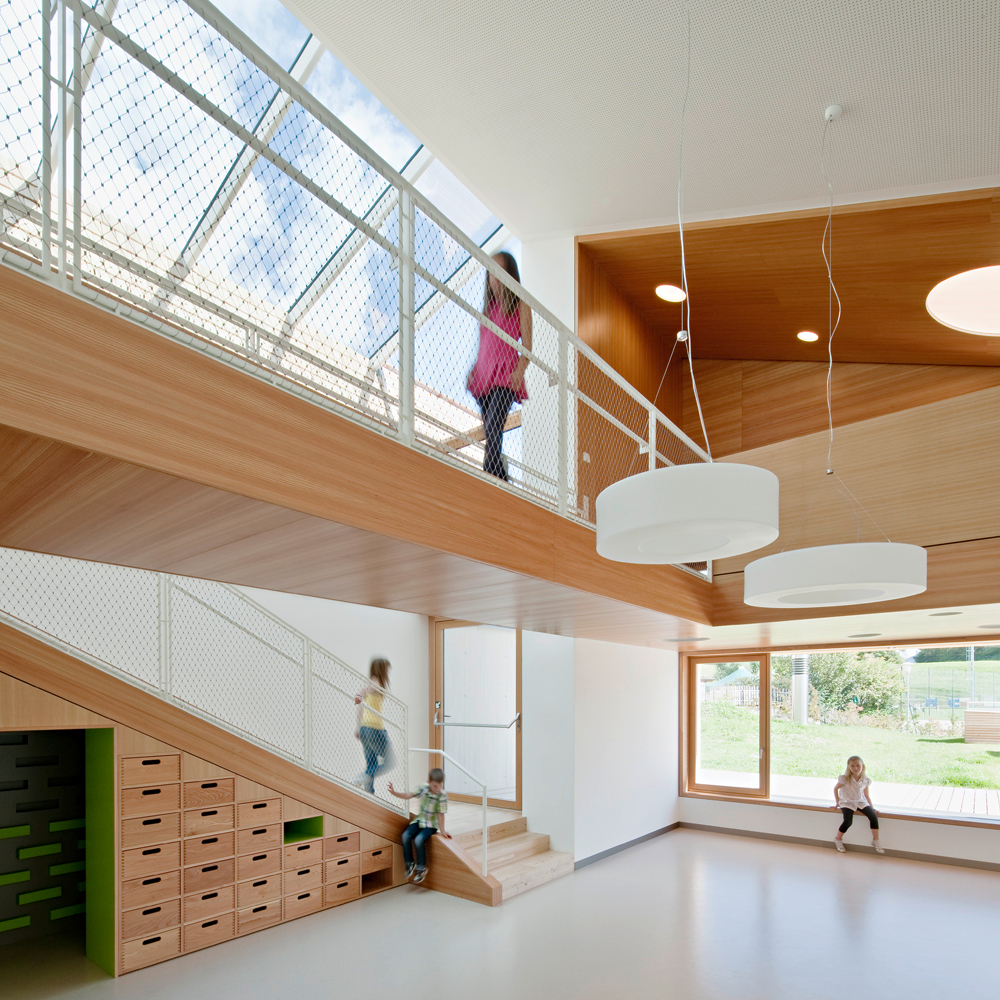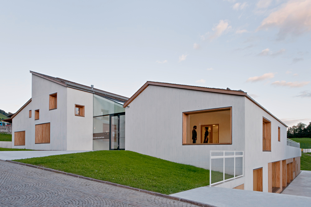 Die Idee zum Bildungsensemble Terenten entsprang 2005 einer Studie, bei der die Bevölkerung mit einbezogen wurde, ein ganzheitliches Konzept für das Dorf zu entwickeln. Ausgehend vom Altbestand aus den 1970er Jahren, in dem die Schule und der Kindergarten zusammen untergebracht waren, entstand über die Jahre ein Konzept, das beiden Einrichtungen mehr Raum und Interaktion ermöglicht und gleichzeitig die bestehende Dorfbibliothek mit integriert. Das Bildungsensemble öffnet sich zum Dorf und umgekehrt - es wird Teil des Alltagkontextes. Voraussetzung für die Umsetzung des progressiven und zeitgenössischen Konzepts bildete die beispielhafte Bildungsautonomie Südtirols und die sehr engagierten im Projekt involvierten PädagogInnen. Prämisse war, ein aktivierendes Lernumfeld zu schaffen, das zum Entdecken, Experimentieren und Forschen animiert. Als Wahrnehmungsmaschine bildet das neue Schulgebäude nicht nur eine adäquate Hülle für zeitgemäßes Lehren und Lernen, sondern stellt selbst ein Lehrmittel dar. Indem es den Raum für seine NutzerInnen in all seinen Dimensionen erlebbar macht, liefert es einen wichtigen Beitrag zur baukulturellen Bildung. Aktivierung bestehender Ressourcen In zwei Bauphasen unterteilt, wurde 2010 der Neubau des Kindergartens mit dazugehörigem Außenraum von feld72 fertiggestellt. 2017 folgte die Überarbeitung des bestehenden Schulgebäudes. Mit der Aktivierung des Altbaus wurde ein ressourcenschonender Bauprozess gewählt. Trotz minimaler Baueingriffe wurde ein Gebäude geschaffen, das nicht nur baulich, sondern auch für neue pädagogische Ansätze Türen öffnet und durch die räumliche Nähe mit dem Kindergarten Synergien nutzt. Das Ensemble schafft durch Freiräume, Zugänge und Verbindungen einen neuen Mehrwert für Terenten. Durch die Integration der Dorfbibliothek verankern sich schulische und soziale Aktivitäten im Dorf. (Text: ArchitektInnen)