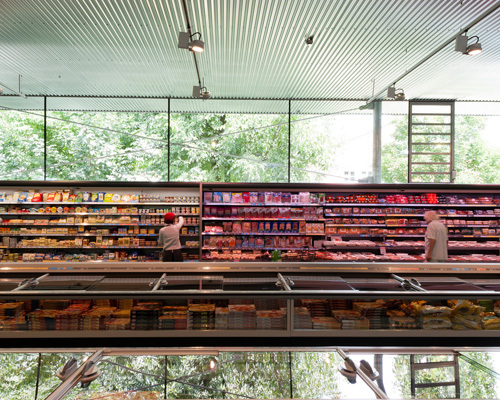 Am Innsbrucker Mitterweg schuf er zwei Bauten für Auftraggeber, die beide mehrfach baukulturelles Verantwortungsbewusstsein bewiesen haben. Für M-Preis, jene Lebensmittelmarktkette, die kontinuierlich architektonisch ordentliche, oft auch herausragende Filialen realisiert, schuf Köberl seinen nun bereits vierten Markt, und in der gleichen Straße, näher am Stadtzentrum, eine Geschäftsstelle der Bank für Tirol und Vorarlberg (BTV). Beide sind Oasen im heterogenen Dickicht der beginnenden Stadtperipherie, wo ein wilder Mix an Gewerbe- und Wohnbauten wenig städtebaulichen Halt gibt und gestalterisch dem Motto „anything goes“ gehuldigt wird. Mit dem sehr luftigen, die Horizontale betonenden Supermarkt, den er mit Durchblicken auf begrünte Dachflächen und anderen Feinheiten veredelte, absorbiert Köberl recht geschickt den rauen Charme der Umgebung.