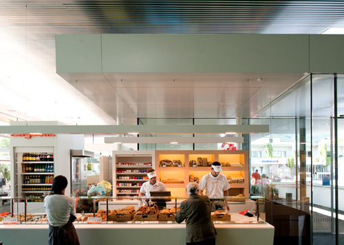Immer wieder verstand es der Innsbrucker Architekt Rainer Köberl, auch ihrem Zweck nach kommerziell orientierten Bauaufgaben so etwas wie „kulturellen Mehrwert“ zu verleihen. Ob ihm das in letzter Zeit nicht dennoch schön langsam zu wenig Inhalt sei, als Bauaufgaben vor allem Supermärkte, Boutiquen, Lokale und nun auch eine Bank zu gestalten? Klar, ein Museum, eine Kirche oder eine Moschee wären schon auch tolle Bauaufgaben, über die er sich freuen würde. Aber jede Aufgabe, so Köberl, habe einen wahren Inhalt. Den herauszuschälen, zu interpretieren und ihm Form zu geben hatte er im vergangenen Halbjahr anhand von recht weltlichen Bauten dreimal Gelegenheit.