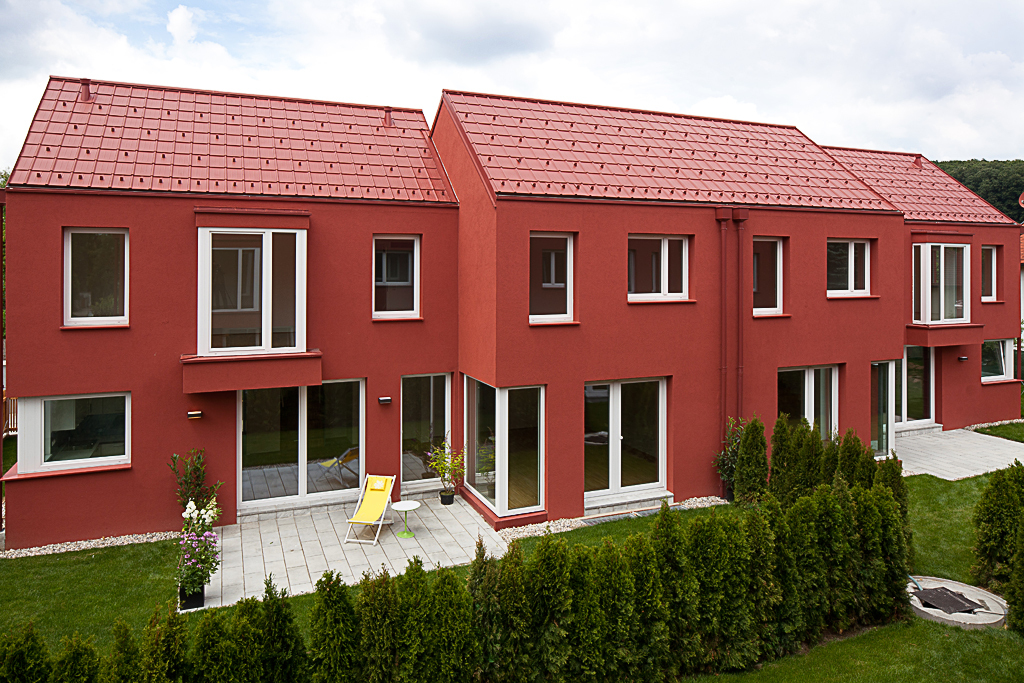 Die Häuser erfüllen die strengen Auflagen der NÖ-Wohnbauförderung. Die Baukörper sind von allen seiten mit dicken Schichten aus Wärmedämmung eingepackt. Eine Luft-Wärmepumpe mit Außengerät und einer Heizzentrale im Keller liefert Brauchwasser und Heizungswärme.