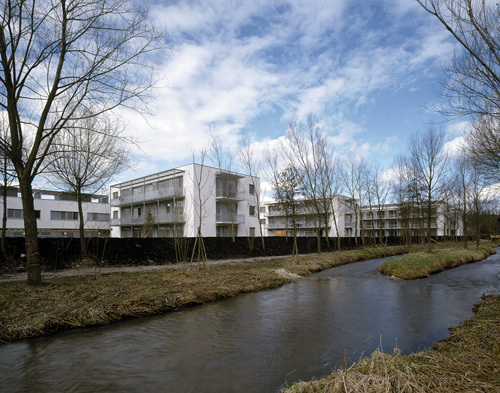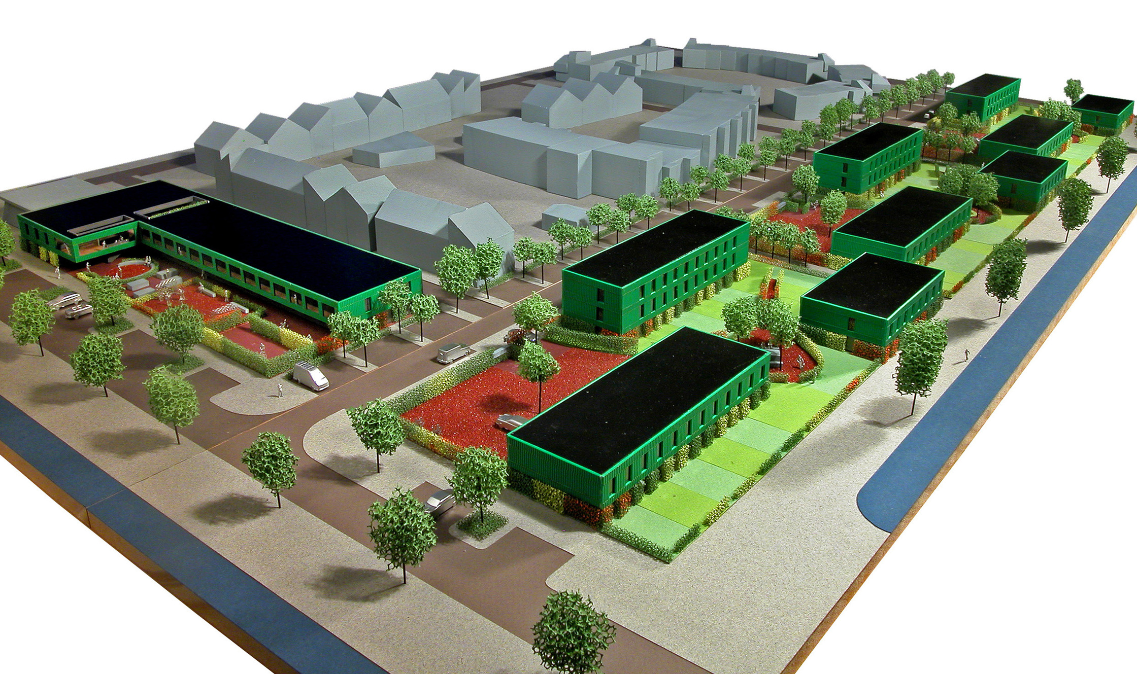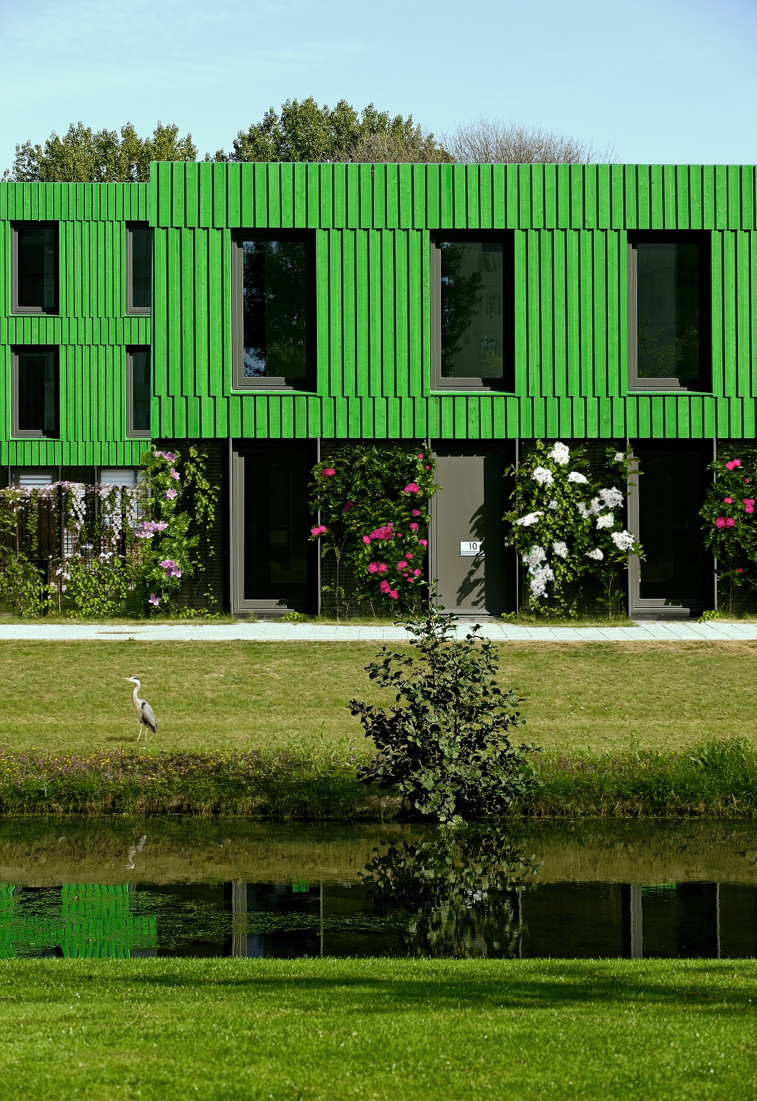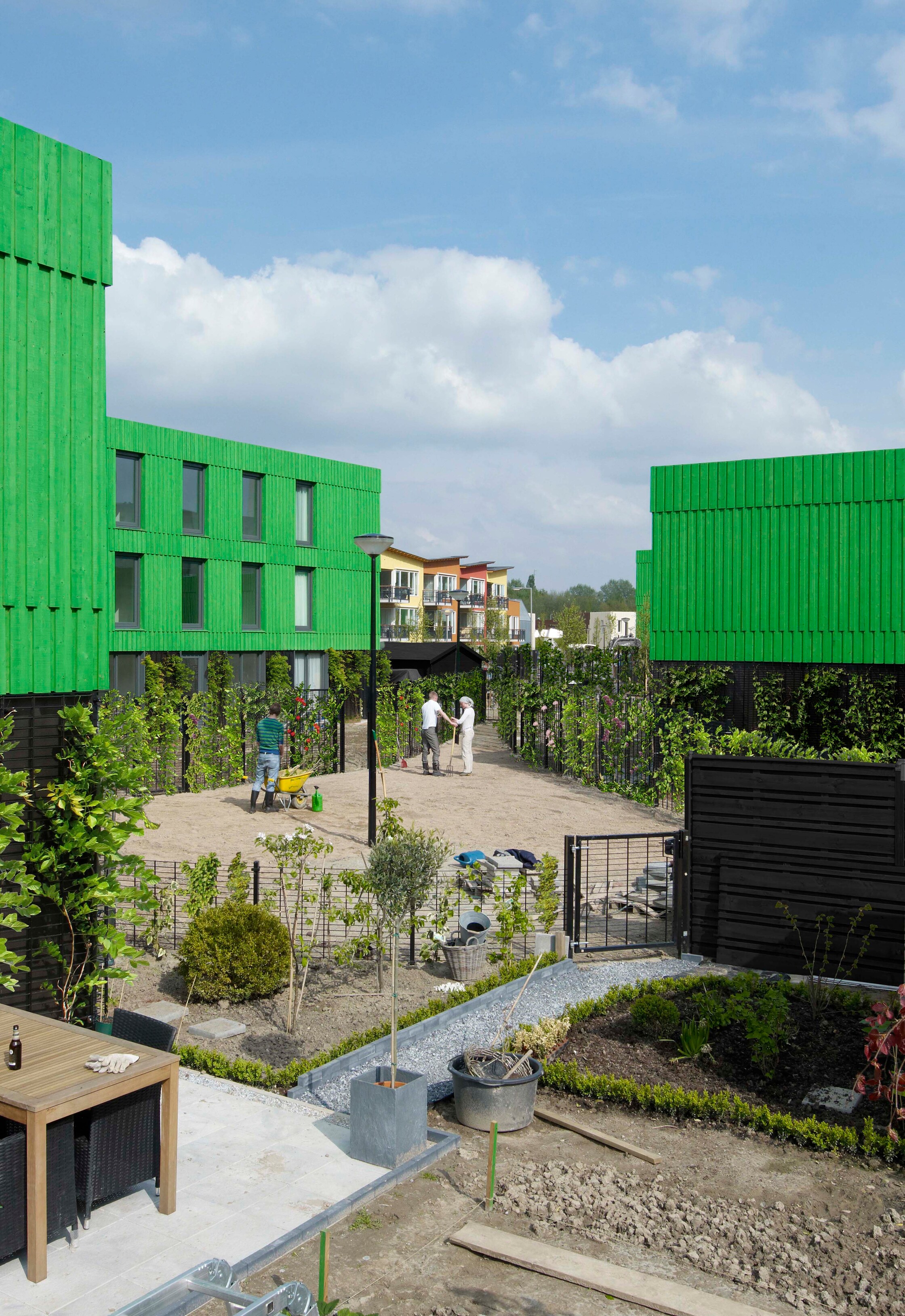 Mit dem Wohprojekt in Hoogvliet haben van Bergen Kolpa Architecten einer bestehenden Gartenstadt neues Gemeinschaftsleben eingehauct. Hoogvliet, eine frühere Deichstadt nahe Rotterdam war durch großangelegte Erweiterungen in den 50er und 60er Jahren zur Satelitenstadt für die Arbeiter eines großen Mineralölkonzerns geworden. Nach Jahrzehnten sozialen und ökomnomischen Wandels startete in den 90er Jahren die Initiative WiMBy! (Welcome into My Backyard!), eine internationale Bauausstellung, die den Kick-Off bildete, um die von 150 unterschiedlichen Nationen bewohnte Gartenstadt auch ins 21. Jahrhundert wachsen zu lassen.