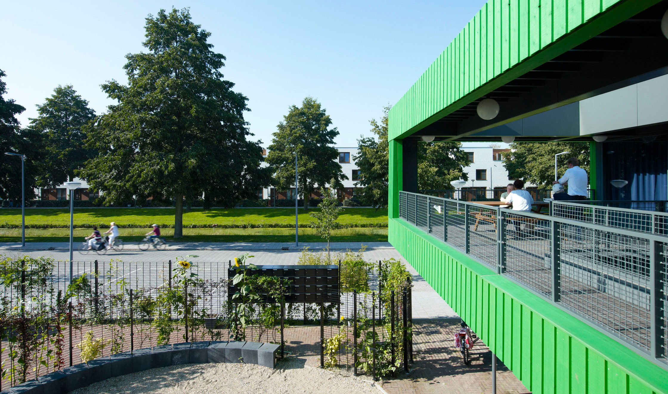 Mit dem Wohprojekt in Hoogvliet haben van Bergen Kolpa Architecten einer bestehenden Gartenstadt neues Gemeinschaftsleben eingehauct. Hoogvliet, eine frühere Deichstadt nahe Rotterdam war durch großangelegte Erweiterungen in den 50er und 60er Jahren zur Satelitenstadt für die Arbeiter eines großen Mineralölkonzerns geworden. Nach Jahrzehnten sozialen und ökomnomischen Wandels startete in den 90er Jahren die Initiative WiMBy! (Welcome into My Backyard!), eine internationale Bauausstellung, die den Kick-Off bildete, um die von 150 unterschiedlichen Nationen bewohnte Gartenstadt auch ins 21. Jahrhundert wachsen zu lassen.