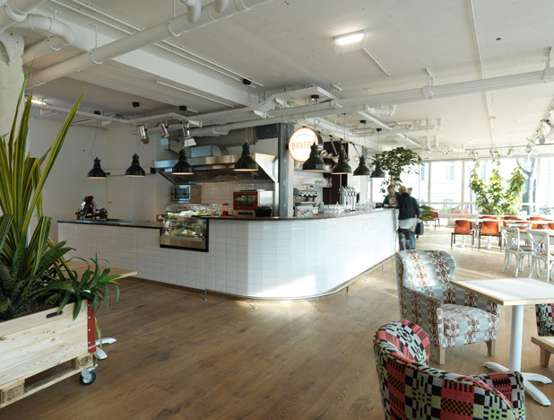 Die Überraschung ist gewaltig, wenn man das neue Hotel Daniel am Landstraßer Gürtel betritt. Denn man kommt zwar in einen sehr großzügigen, offenen Raum mit einer Art Empfangszone sowie Bar und/oder Restaurant („Bakery“), aber möbliert ist das Ganze äußerst eigentümlich, auf eine Art gehobenes Flohmarktniveau. Da mischen sich die Nachkriegsjahrzehnte beliebig durcheinander, durchaus konzentriert auf Massendesign, dazwischen niedrige Tische, die sogar Euro-Paletten nutzen, wie sie jeder Hubstapler im Baumarkt bewegt. Viele Topfpflanzen, meistens der kleineren, wenig repräsentativen Art. Spiegel? Eine alte Psyche, so stand sie auch im Schlafzimmer meiner Eltern. Eine wunderschöne, hölzerne Werkbank, wozu ist die da? – Was man zunächst aber keineswegs findet, das ist die Rezeption.