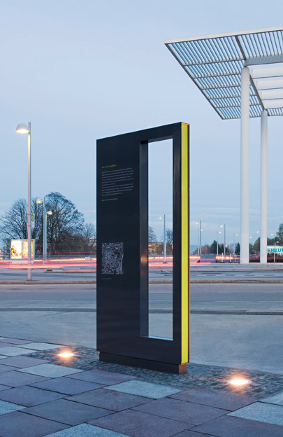 Bei den Platz-Stelen wird dieses Prinzip um noch eine – kreative – Dimension erweitert: Der Flaneur, die Flaneuse können sich, wie beim Fotografieren ein eigenes Stadtbild gestalten! Durch die Distanz zwischen der Rahmung und einem „Schaustück“ am oder rund um den Platz können Blickwinkel und Bildausschnitt selbst bestimmt und ein Objekt eigener Wahl in den Rahmen gerückt werden – sei es ein Gebäude, ein Baum oder auch eine Person. Der bewegte Blick durch den starren Rahmen erzeugt eine Spannung, die dem touristisch noch unverdorbenen Sankt Pölten zugute kommen wird. Und vielleicht wird es stadtflüchtige Wiener geben, die, bevor auch dort „Busse willkommen“ sind, der niederösterreichischen Landeshauptstadt mit der Bahn eine Tagesvisite abstatten und sich direkt vom Bahnhof weg von einem intelligenten System mit starker Bodenhaftung durch die Kulturgeschichte der Stadt leiten lassen.