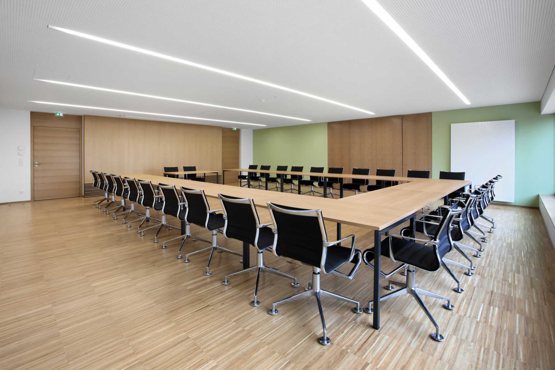 Das Gebäude ist mit hochwertiger Wärmedämmung eingepackt. Passivhausfenster ersetzen die alten aus Metall. Die Wärmeversorgung und Kühlung erfolgt zentral mit der Sole-Wasser-Wärmepumpe über neun Erdsonden, die bis zu zweihundert Meter in die Tiefe reichen. Außer für die Pumpen entsteht kein zusätzlicher Energiebedarf. Niedertemperaturradiatoren sowie die üftungsanlagen verteilen die Wärme im Gebäude. Saal und Foyer werden mittels Fußbodenheizung temperiert, alle Räume haben kontrollierte Be- und Entlüftung.