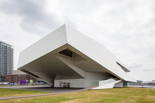 Was die einen liebevoll als „Auster“ und die anderen noch liebevoller als „weißen Schwan“ bezeichnen, wurde von den Marketingleuten des Museums schlicht und nüchtern EYE genannt.