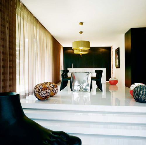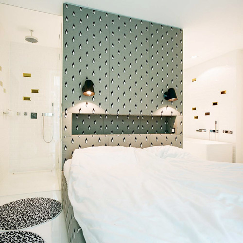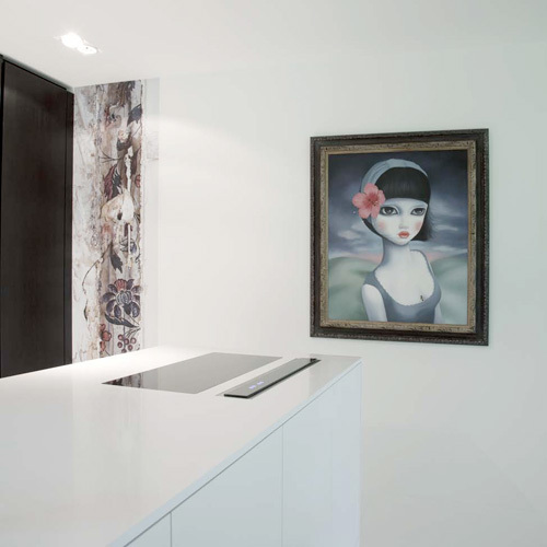 Fußboden: großformatige Fliesen, weiß hochglänzend