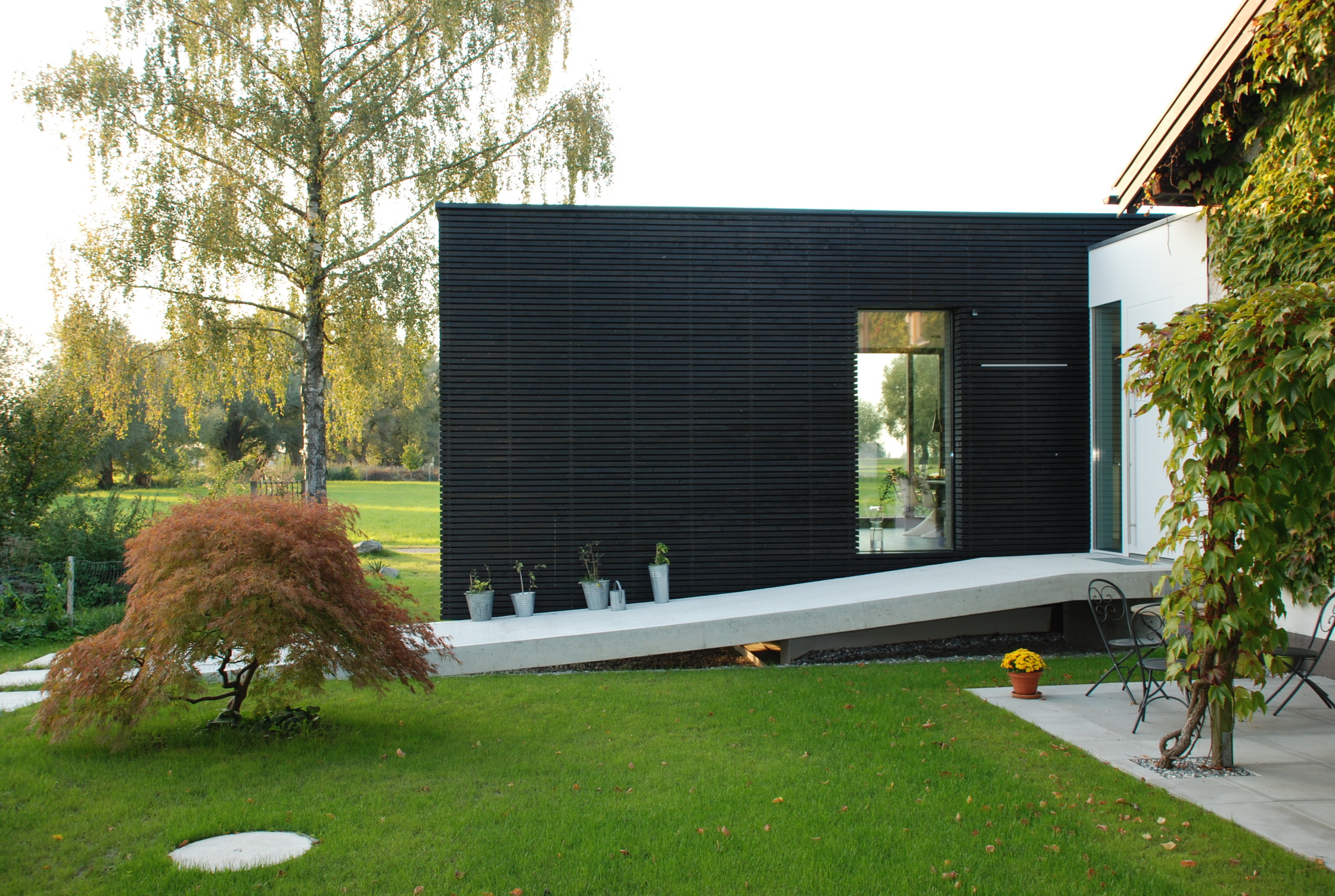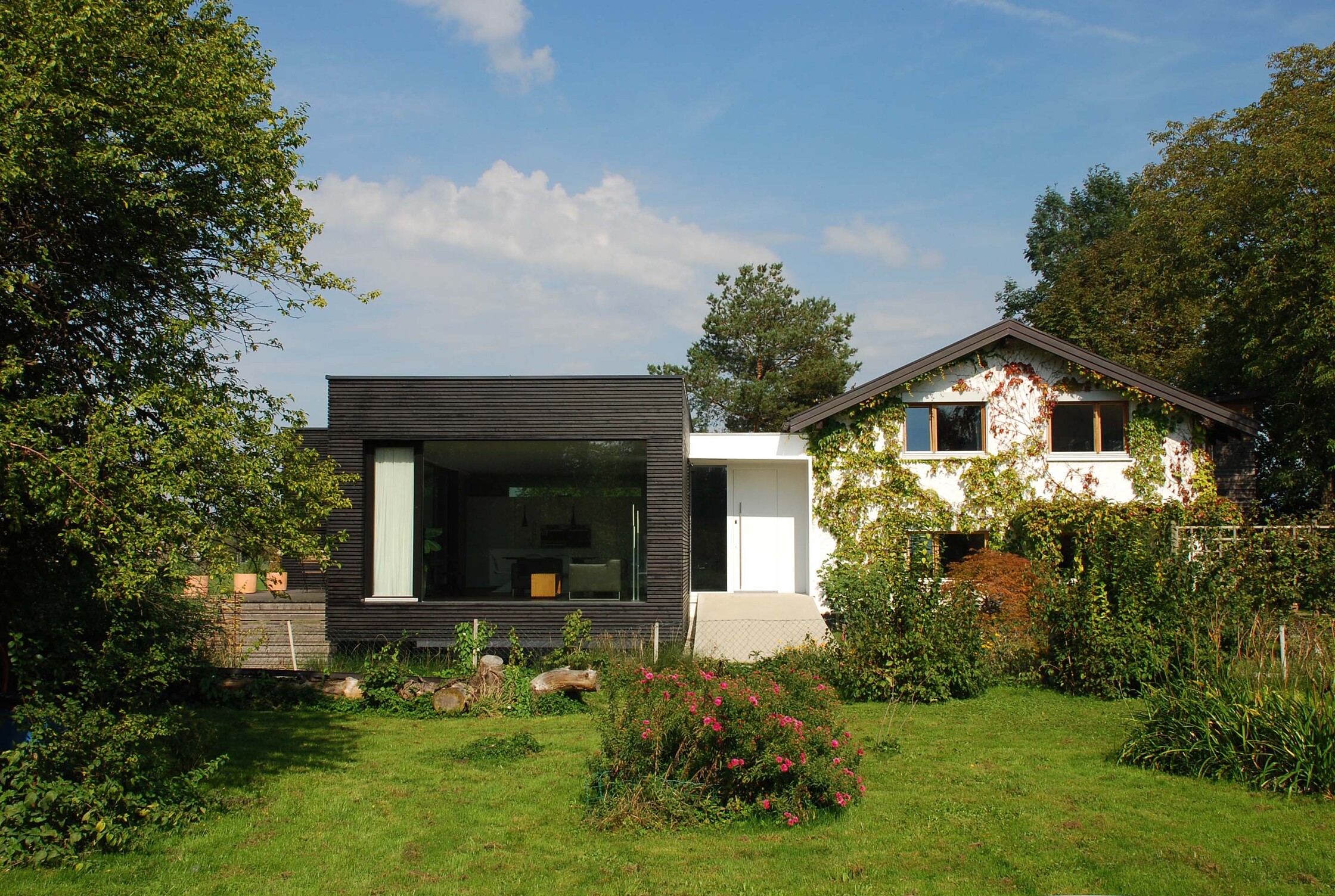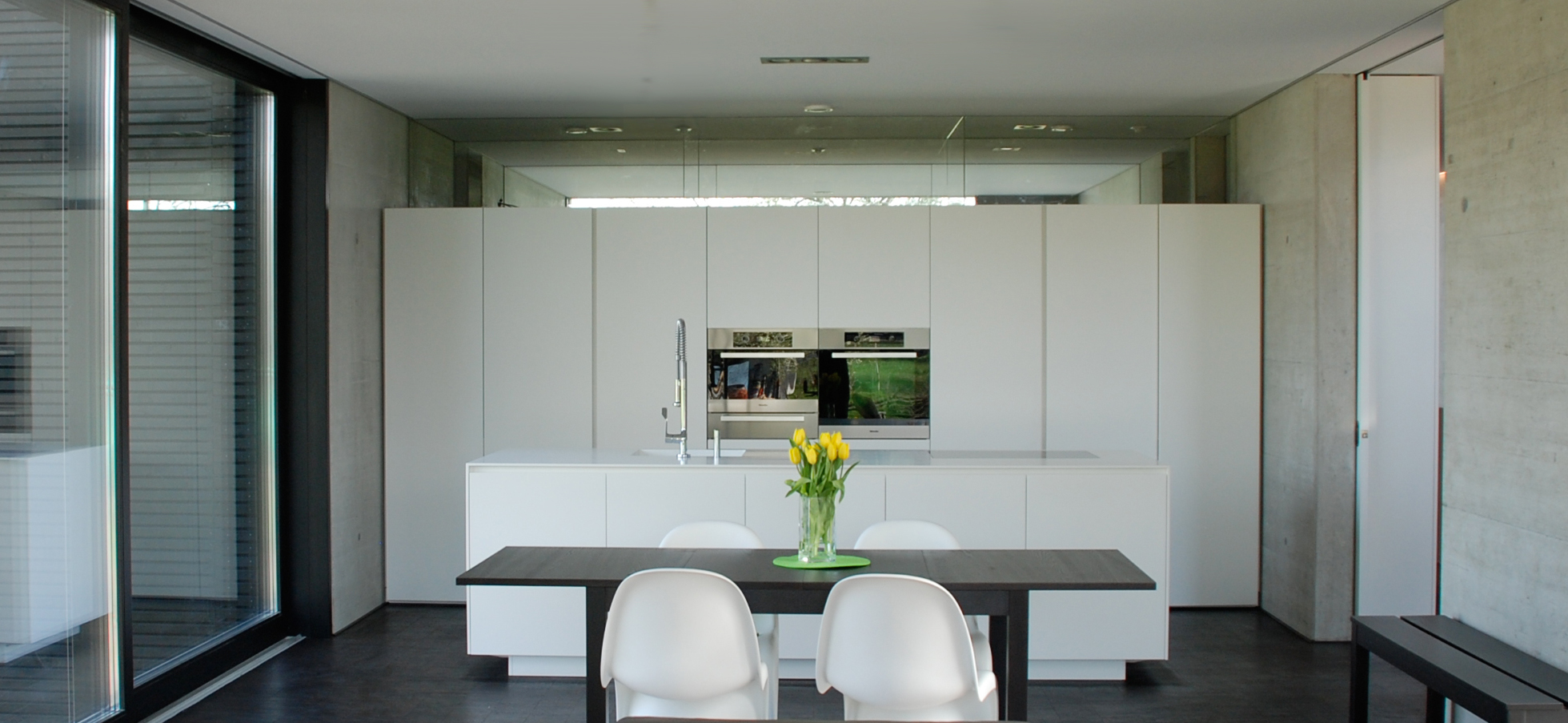 Das Passivhaus wird mit einem Kompaktgerät (Stiebel Eltron) betrieben: Kontrollierte Be- und Entlüftung, Warmwasser mittels Sonnenkollektoren, Fußbodenheizung.
