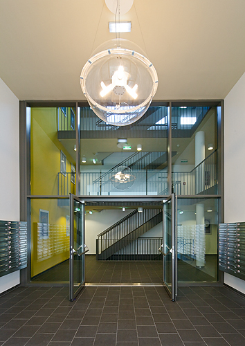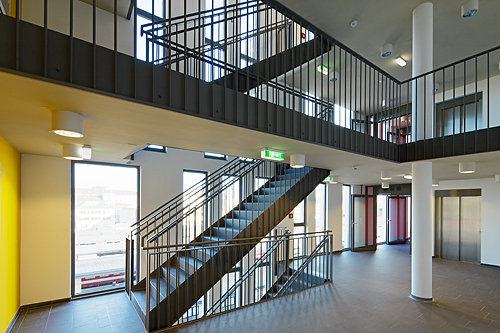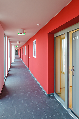 Massivbauweise mit Vollwärmeschutz; Dämmstoffe sind HFKW-frei; Rohre, Folien, Fußbodenbeläge und Fenster sind PVC-frei. Mit einem Chemikalienmanagement wurde die Qualität der Innenraumluft auf höchstem Niveau sichergestellt (Verbot von Lösemitteln, emissionsarme Baustoffe im Innenausbau).
