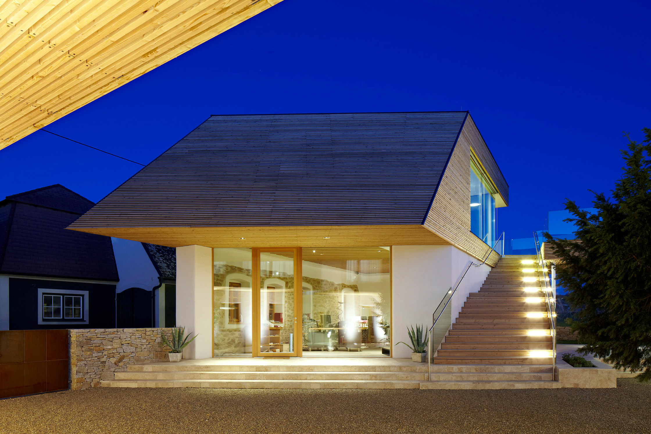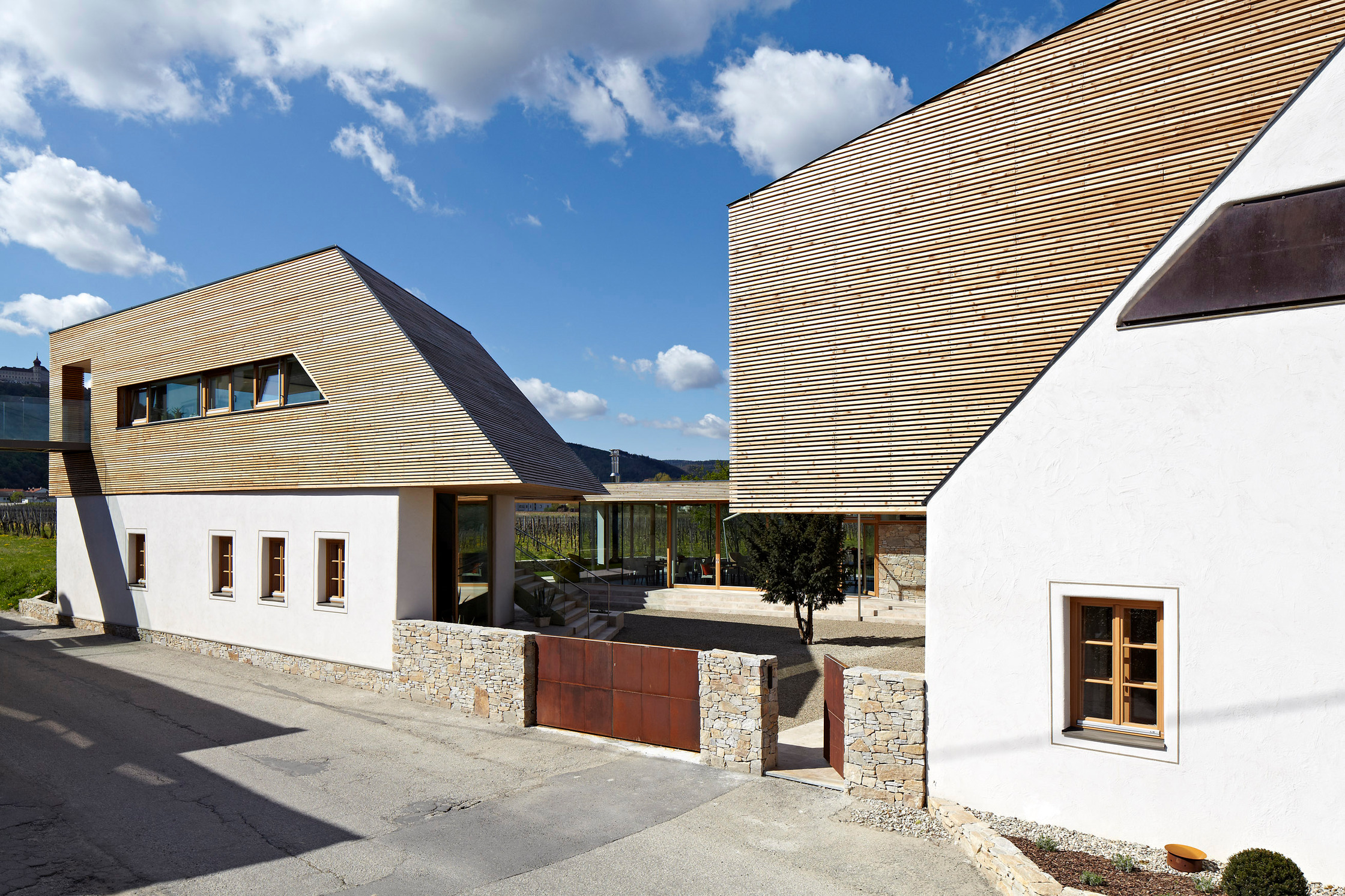 Zusätzlich wird eine kontrollierte Wohnraumlüftungsanlage eingebaut, wofür die Luftansaugung über den bestehenden alten Weinkeller geführt wurde. Ergebnis ist im Winter eine kostenlose Vorwärmung der Frischluft sowie im Sommer Erzeugung eines Kühleffekts durch die angenehmen Kellertemperaturen. Durch diese haustechnischen Maßnahmen wurden sämtliche Ressourcen von dem bestehenden Weingut genutzt, um das neue Gebäude so ökologisch und umweltfreundlich wie möglich zu betreiben.