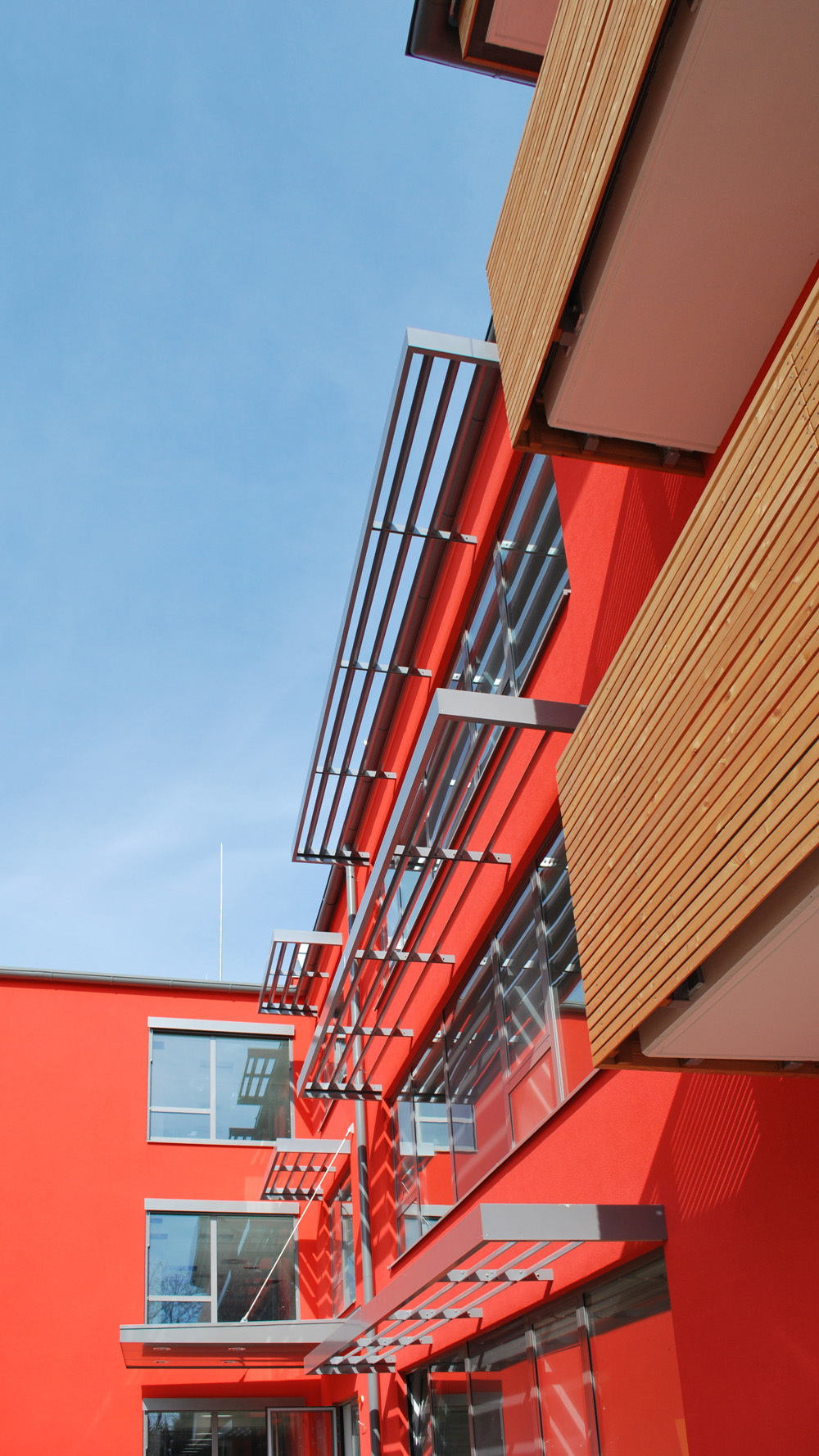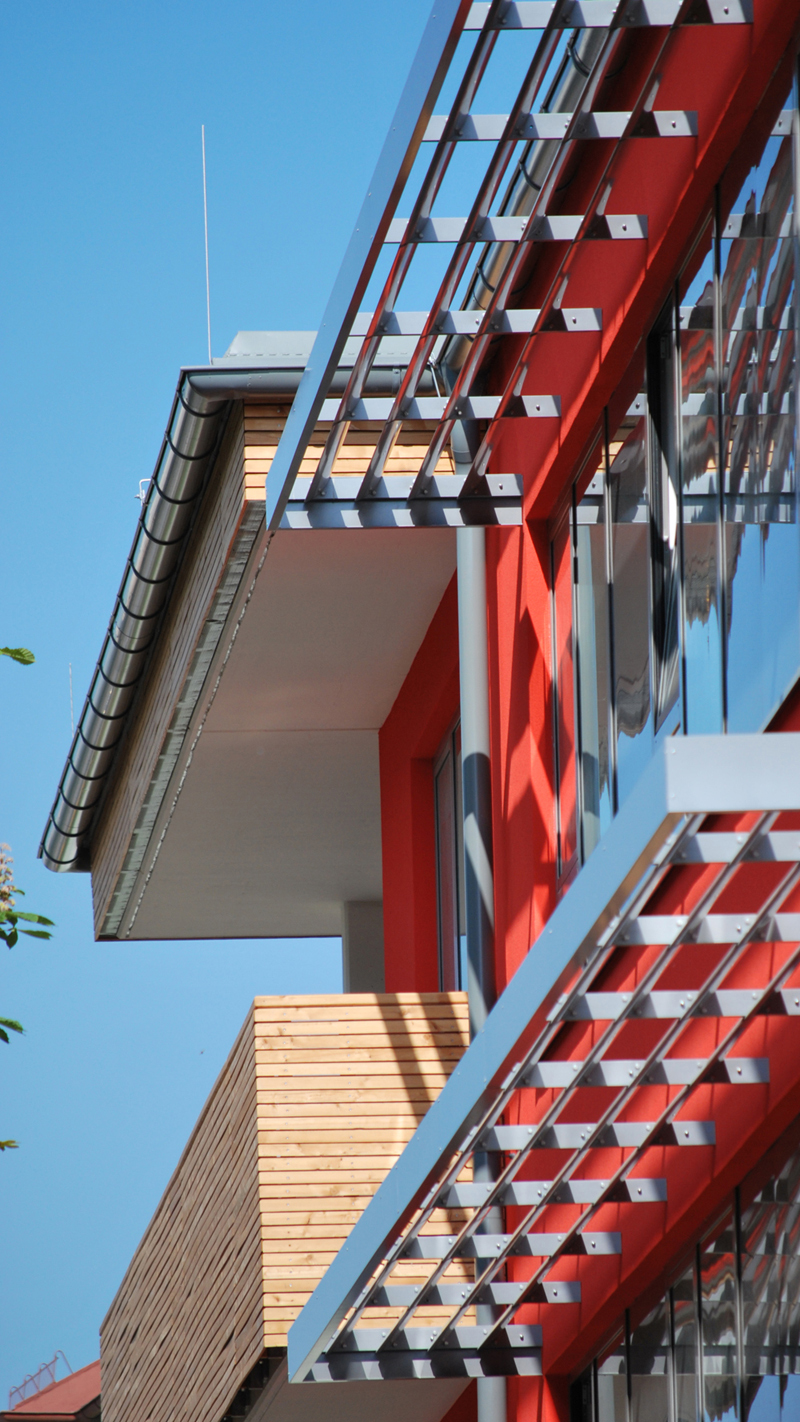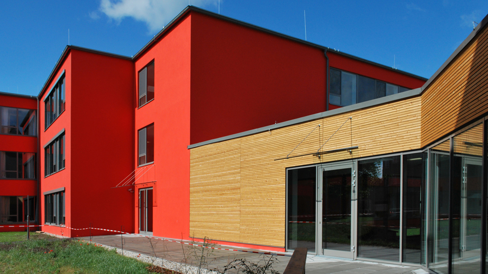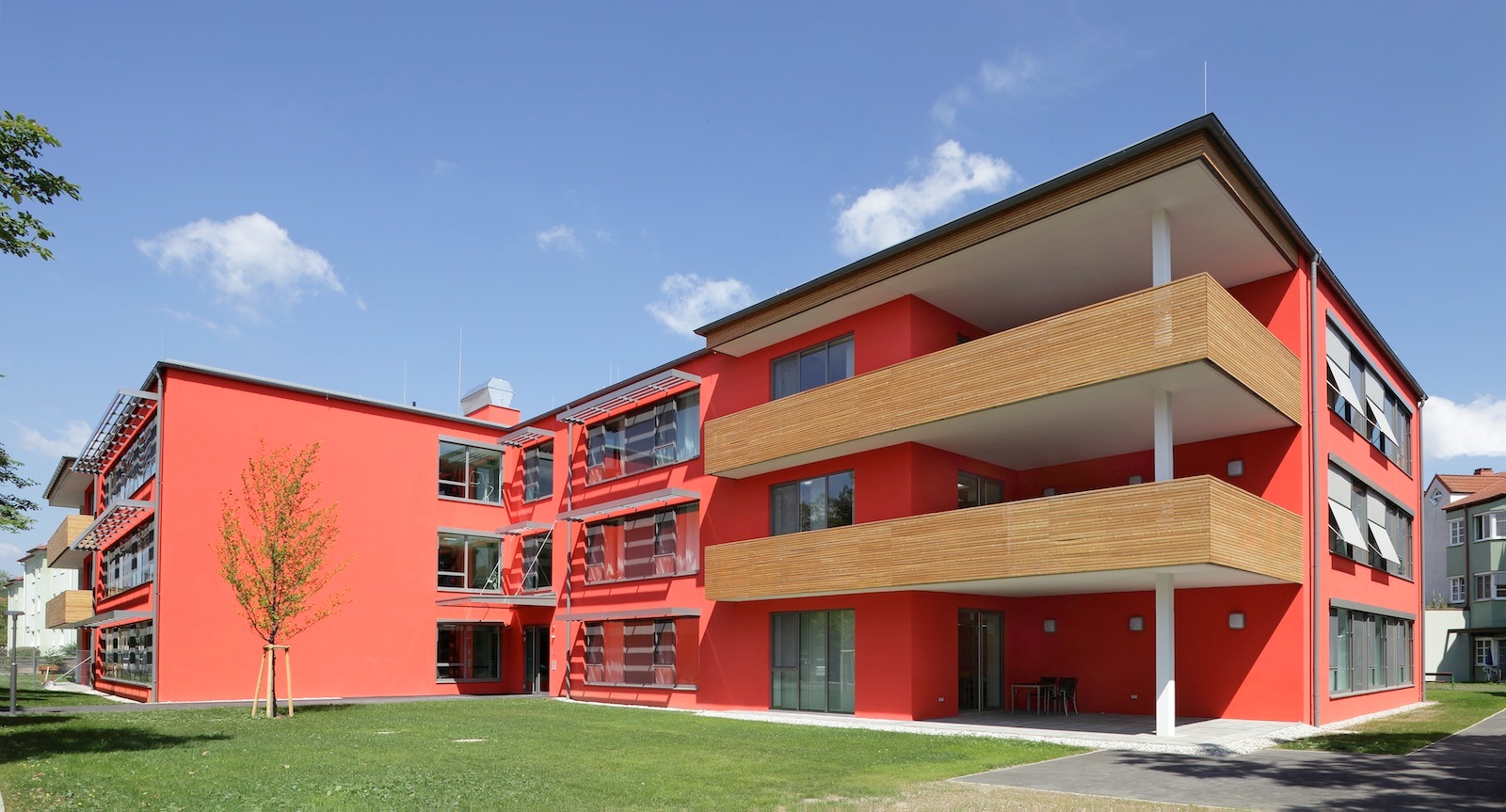 Der gesamte Neubau wird mit einer Vollwärmeschutzfassade, teilweise mit Holz verkleidet, in Niedrigenergie – Ziegelbauweise errichtet.
