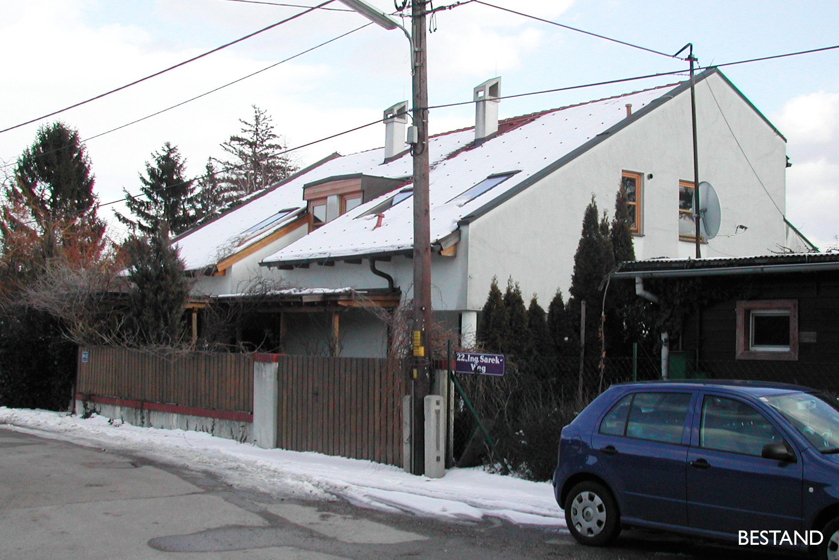 Das Haus war noch nicht in die Jahre gekommen – 10 Jahre nach Fertigstellung – da wandte sich die Kleingartenhausbewohnerin mit Umbauwünschen und der Sehnsucht nach einem „Zimmer mit Aussicht“ an Looping Architekten. Foto: Bestandaufnahme vor dem Umbau
